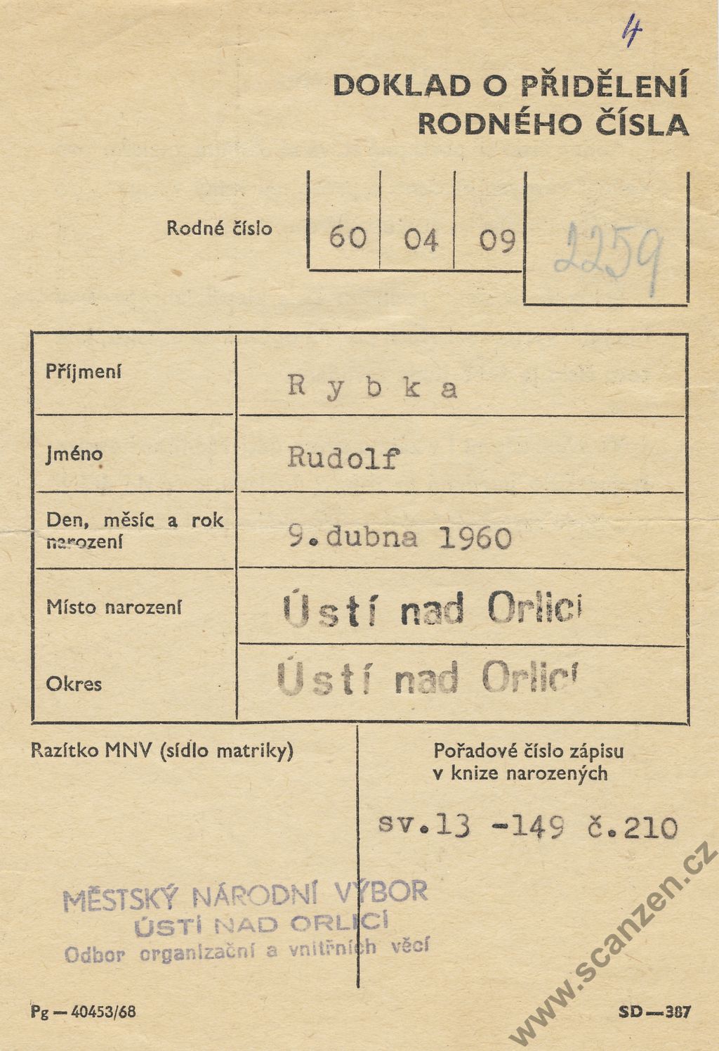 Doklad o přidělení rodného čísla p1