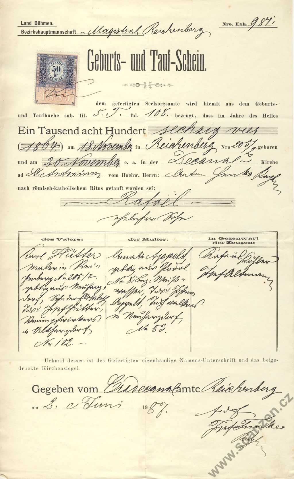 Křestní list-Tauf-Schein (1887)