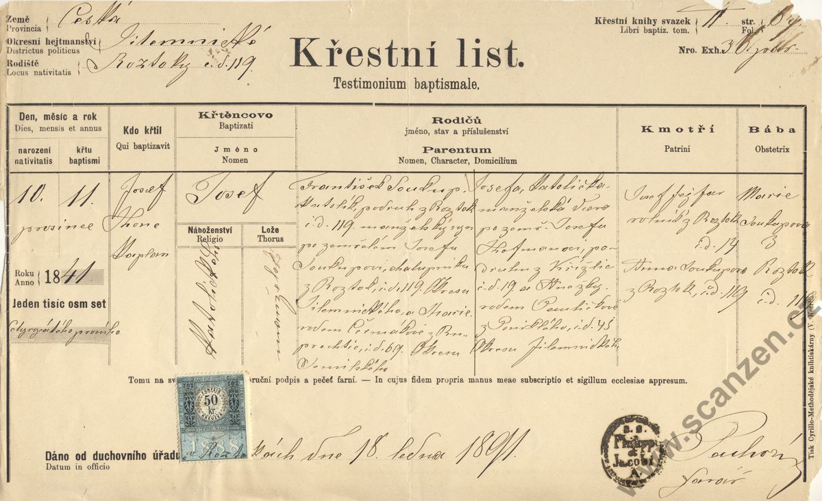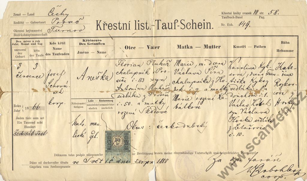 Křestní list-Tauf-Schein (1888)