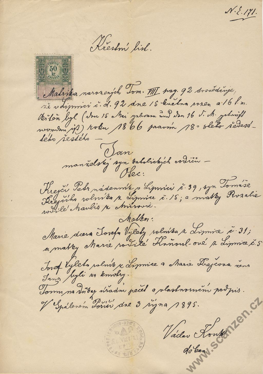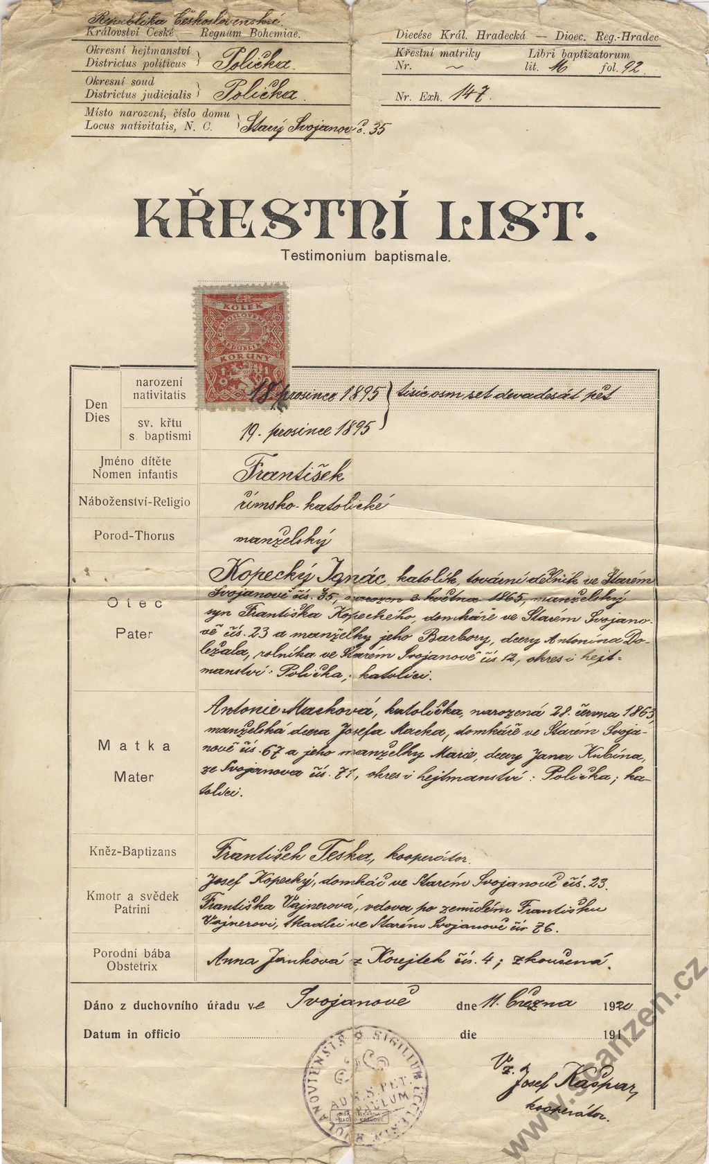 Křestní list (1895)