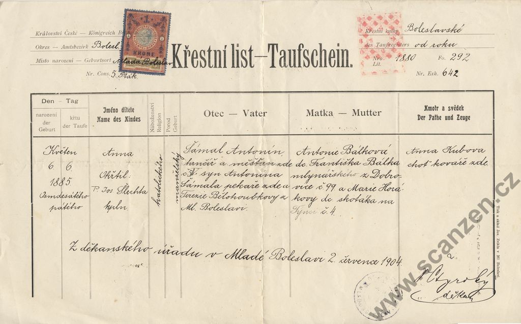 Křestní list (1904)