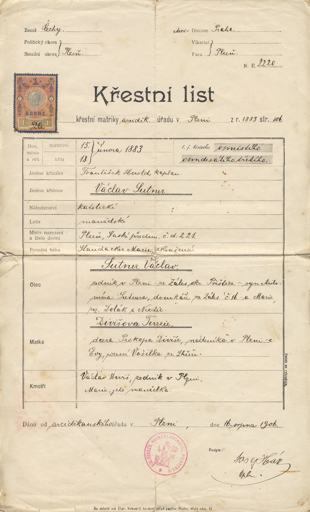 Křestní list (1906)