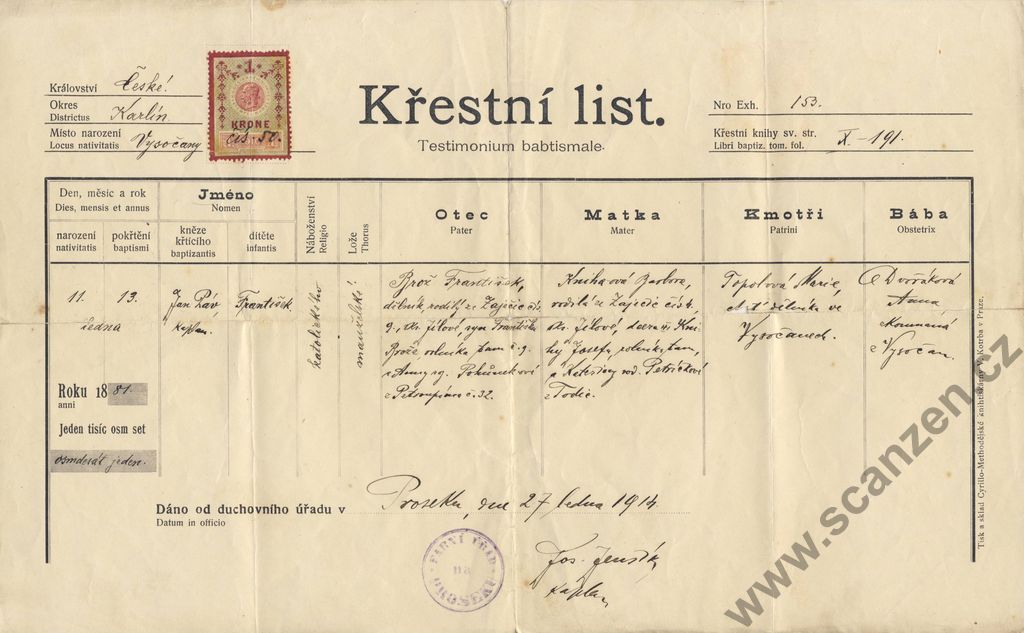 Křestní list (1914)