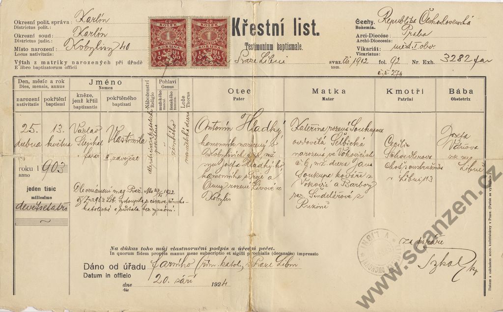Křestní list (1924)
