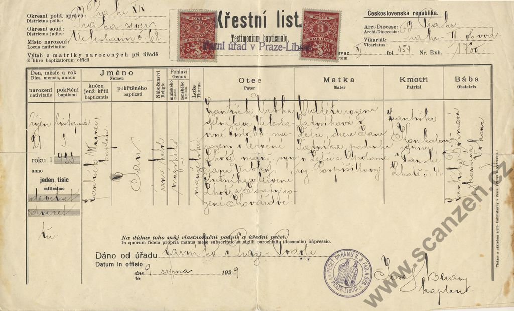 Křestní list (1929)