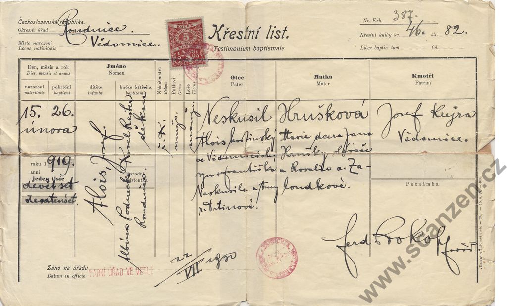 Rodný a křestní list (1919)