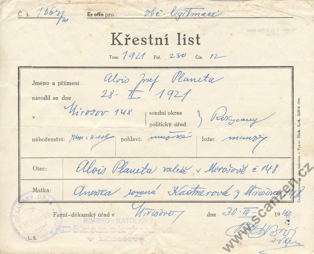 Křestní a rodný list (1940)