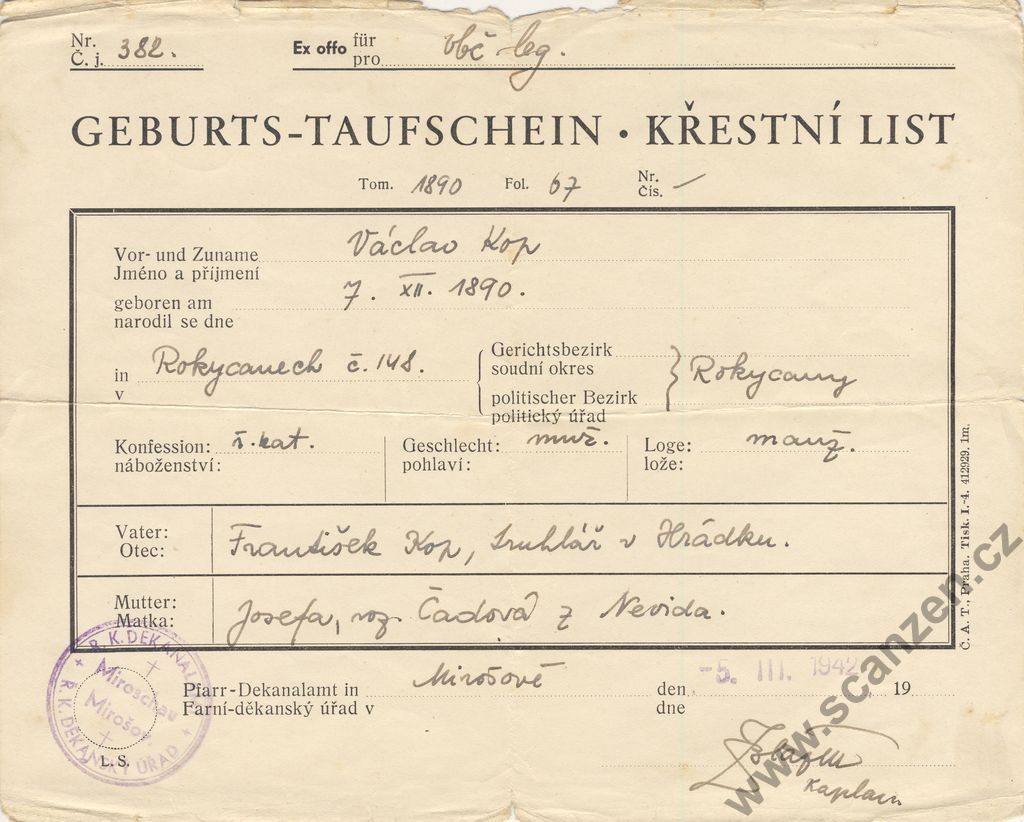 Geburts – und Taufschein – Rodný a křestní list (1942)