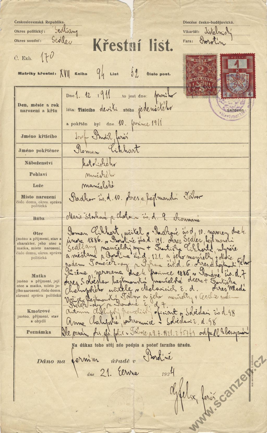Křestní list 2 (1924)