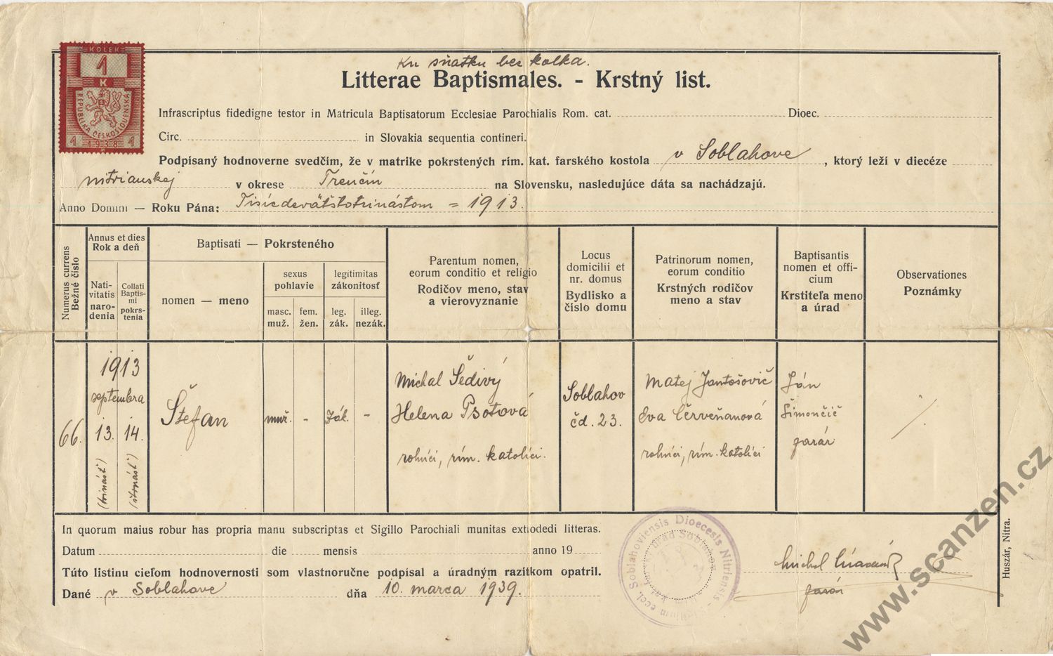 Křestní a rodný list (1939)