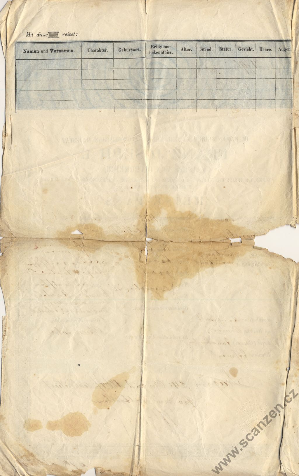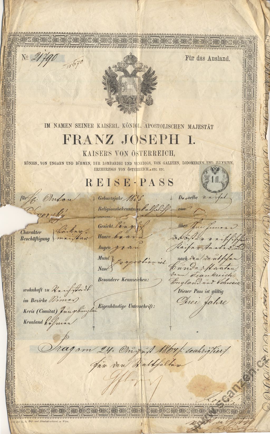 Reise-Pass (1864) p1