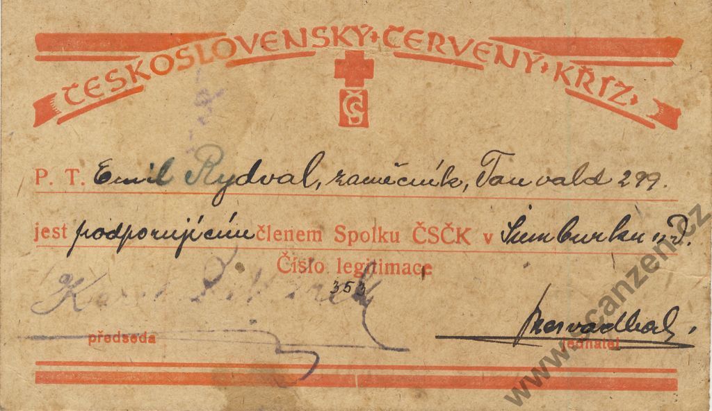 Členská legitimace Československý červený kříž (1922) p1