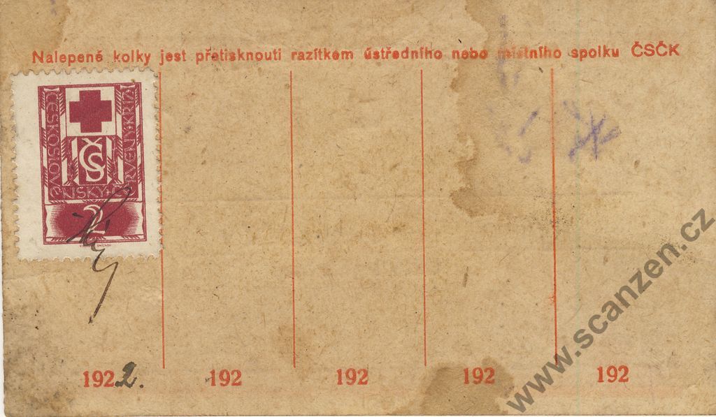 Členská legitimace Československý červený kříž (1922) p2