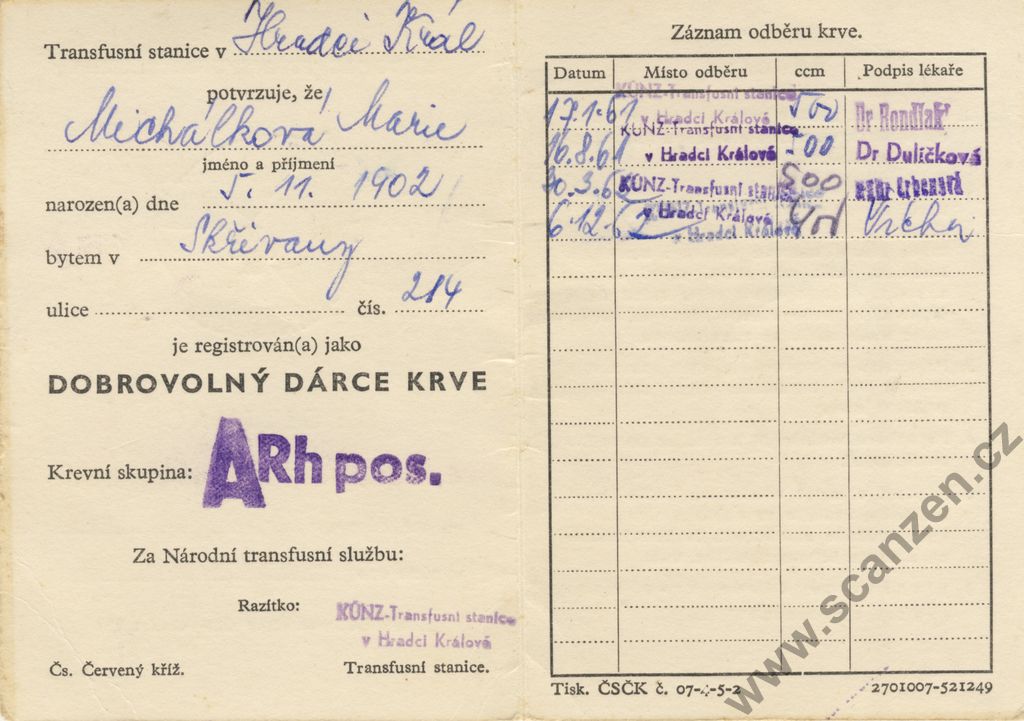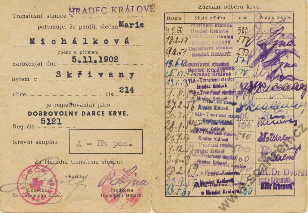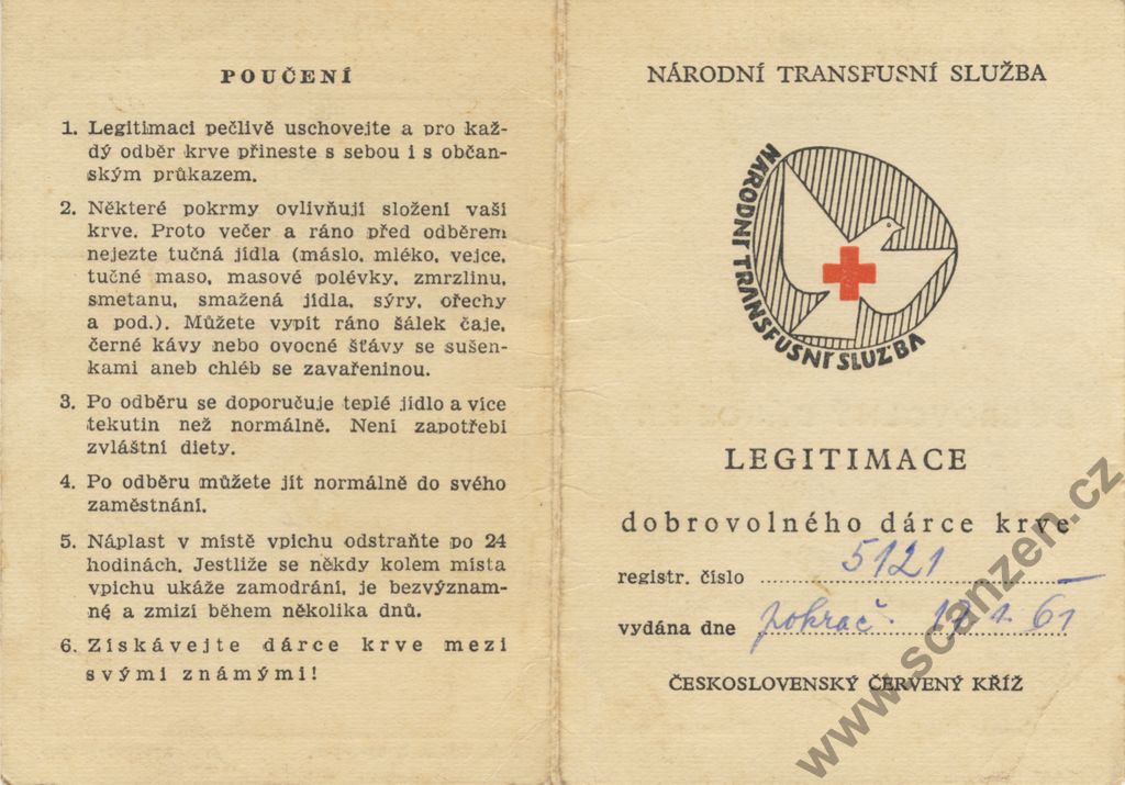 Legitimace dobrovolného dárce krve (1961) p1