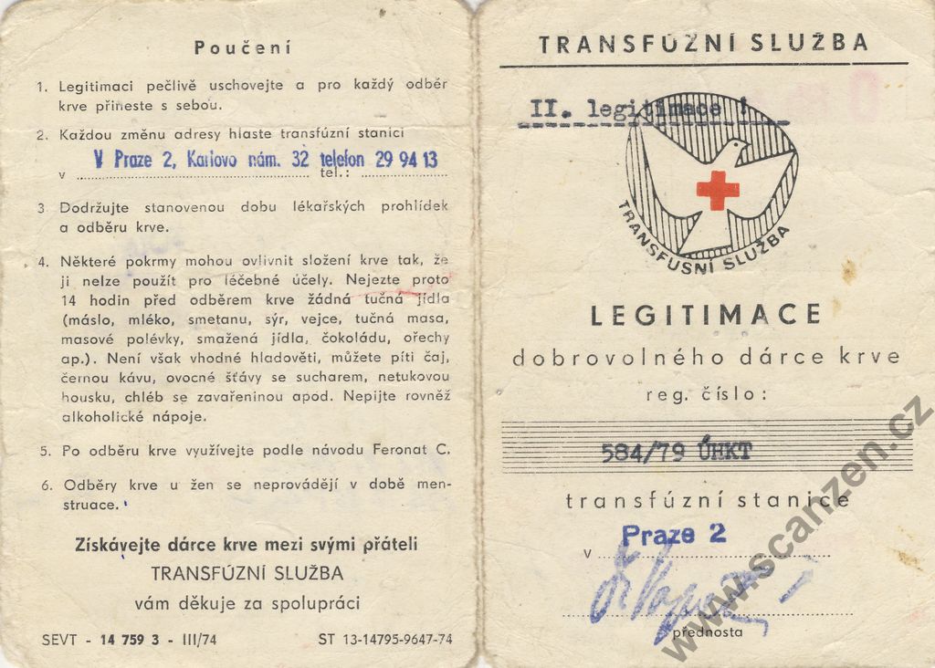 Legitimace dobrovolného dárce krve (1979) p2