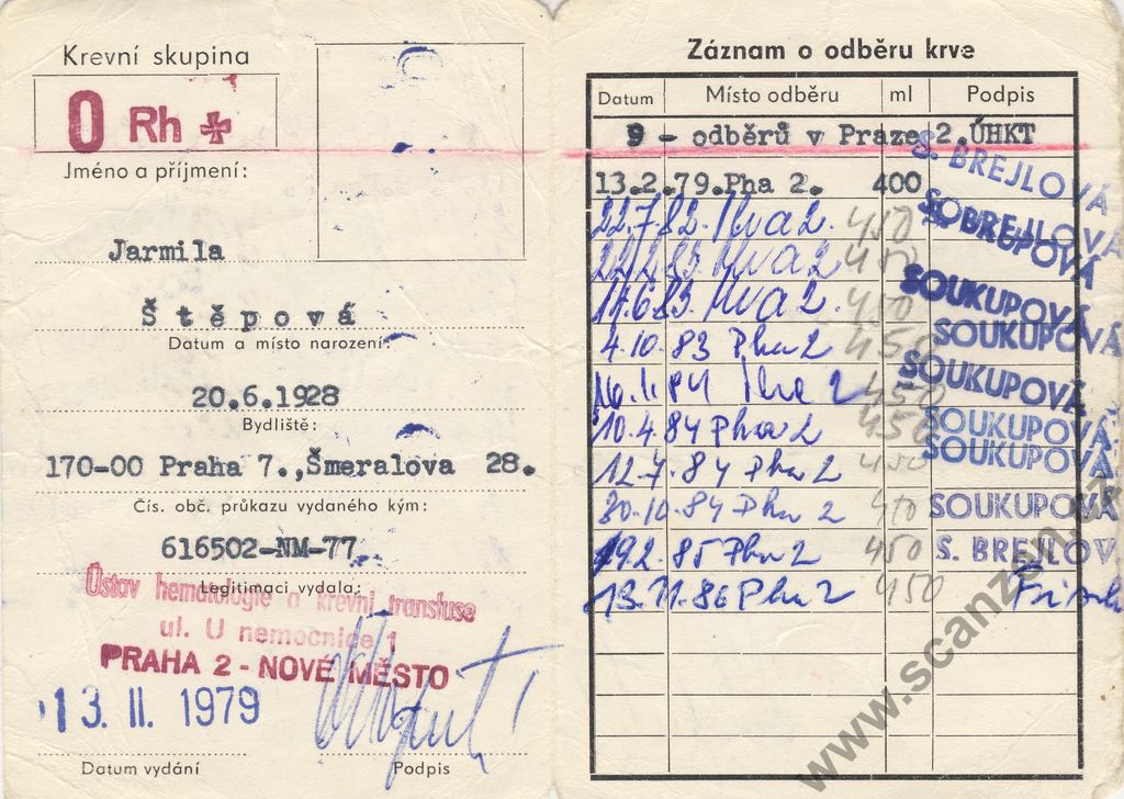 Legitimace dobrovolného dárce krve (1979) p1
