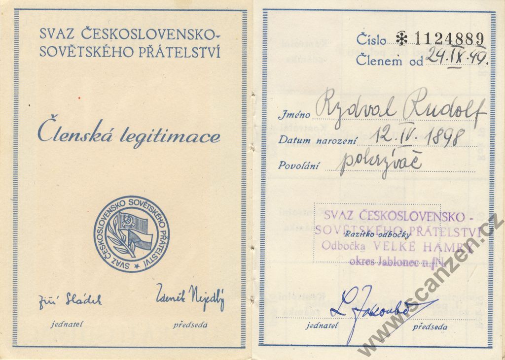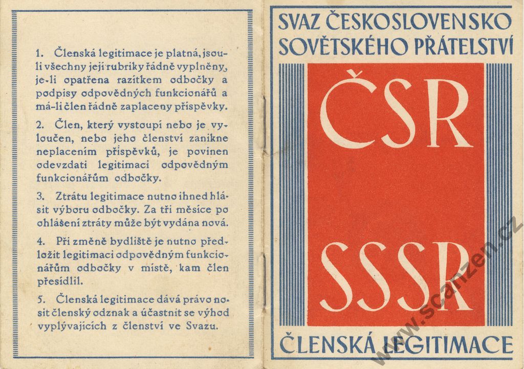 Členské legitimace Svazu československo – sovětského přátelství