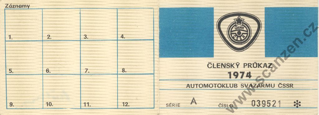 Členský průkaz automotoklub Svazarmu ČSSR (1974) p1