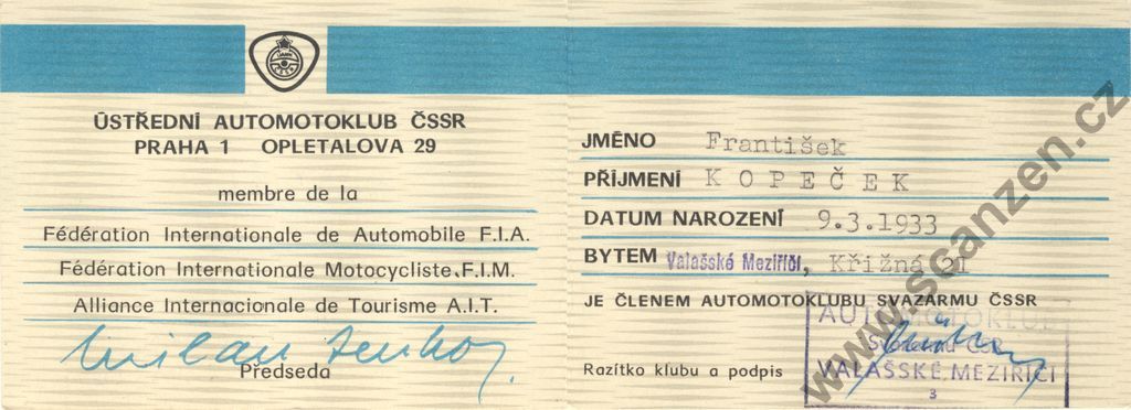 Členský průkaz automotoklub Svazarmu ČSSR (1974) p2