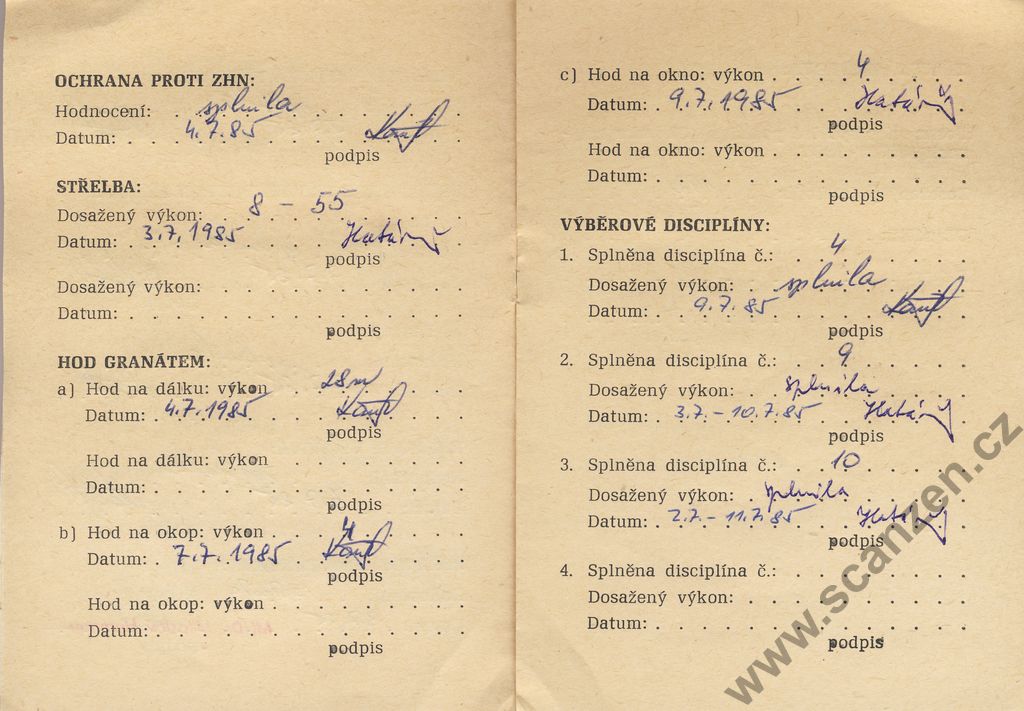 Odznak branné připravenosti – průkaz soutěžícího (1985) p4
