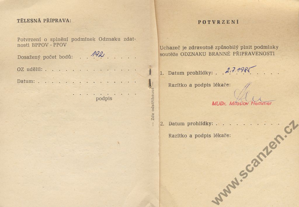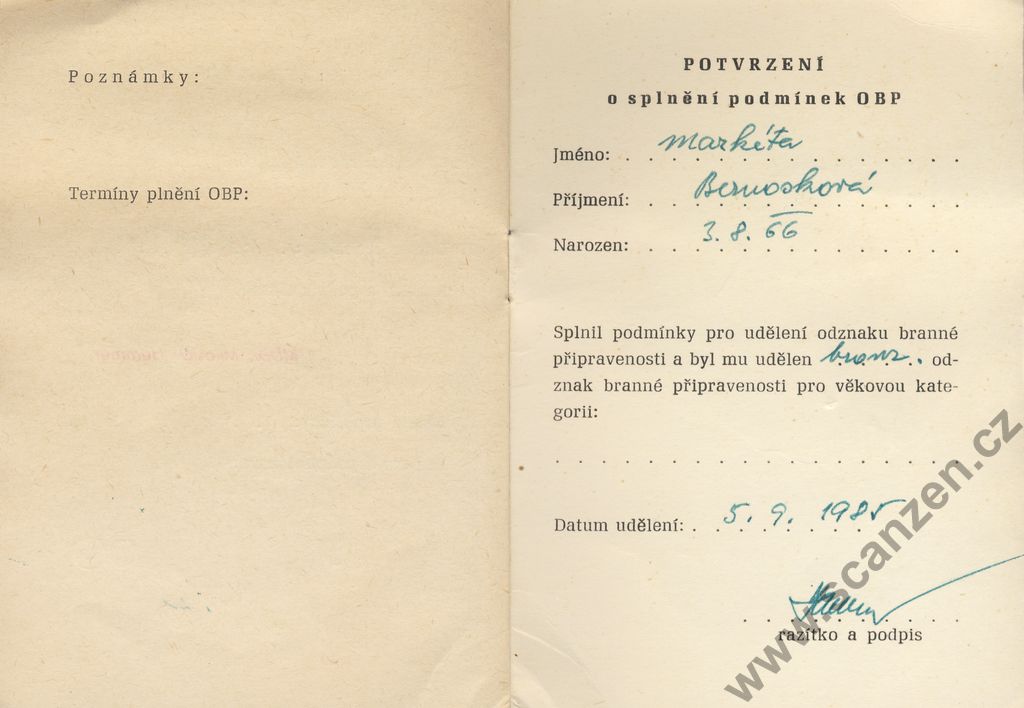 Odznak branné připravenosti – průkaz soutěžícího (1985) p3