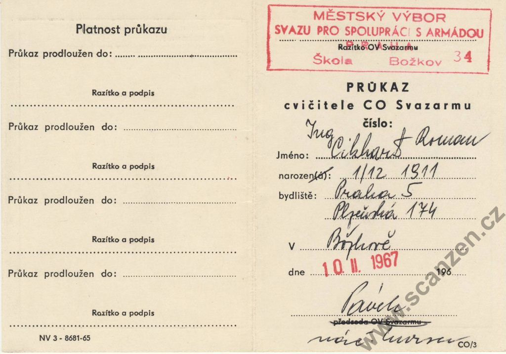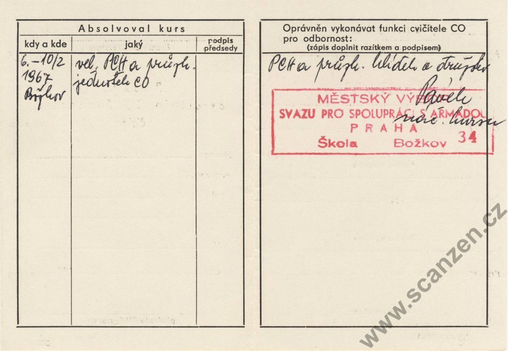 Průkaz cvičitele CO Svazarmu (1967) p2