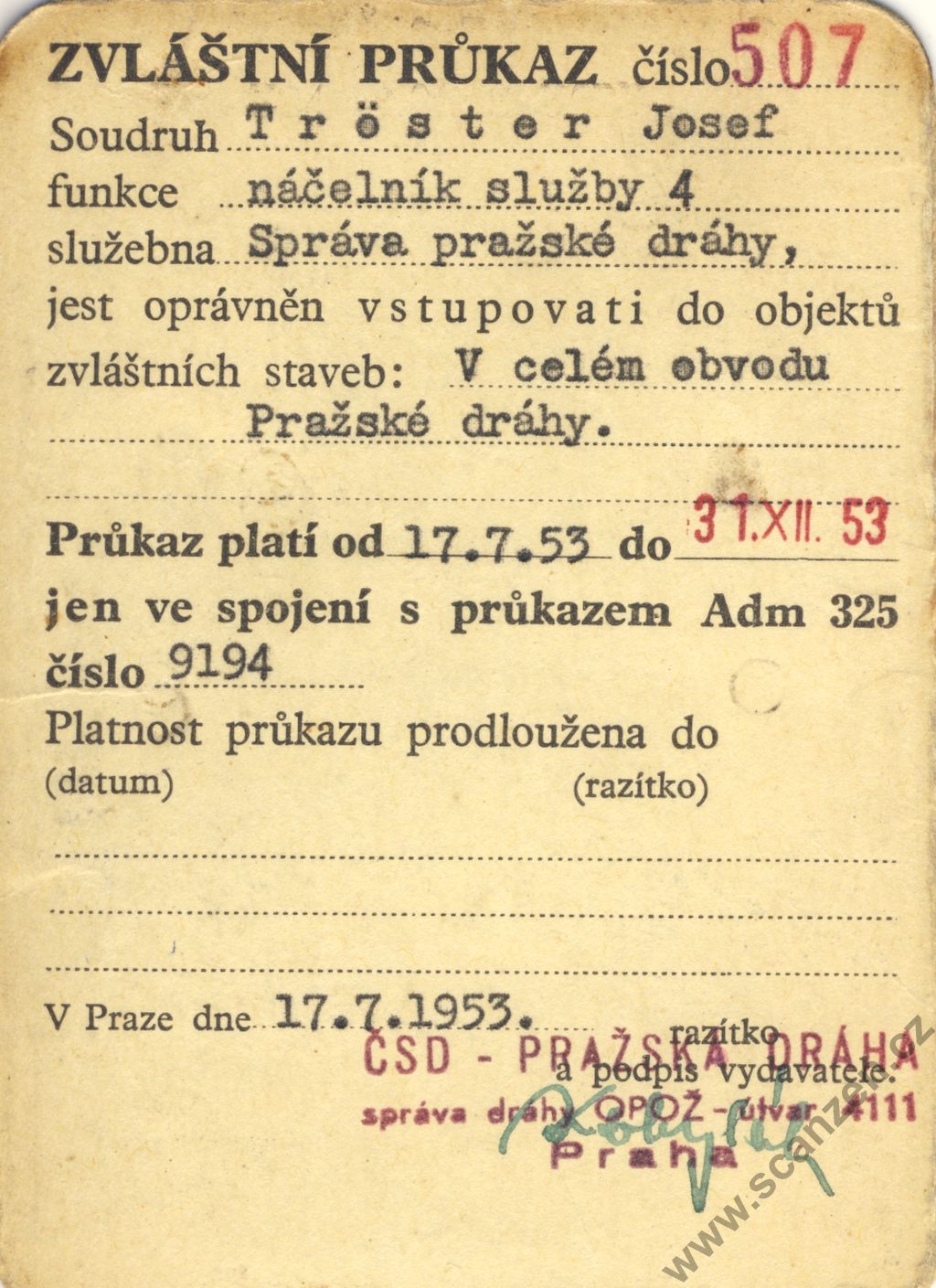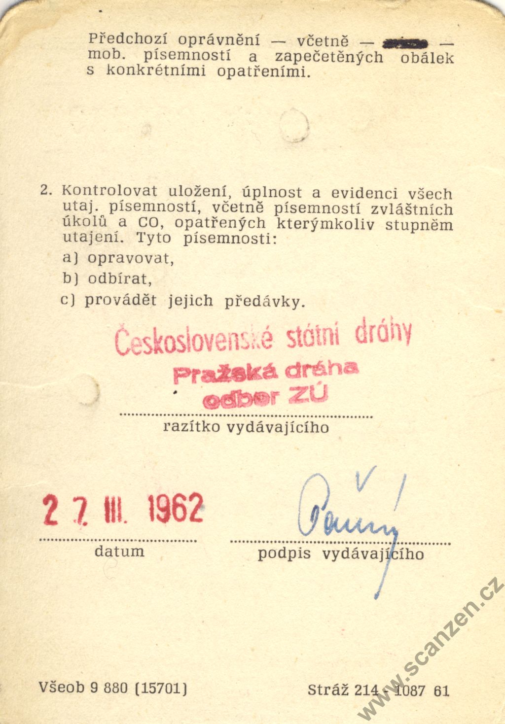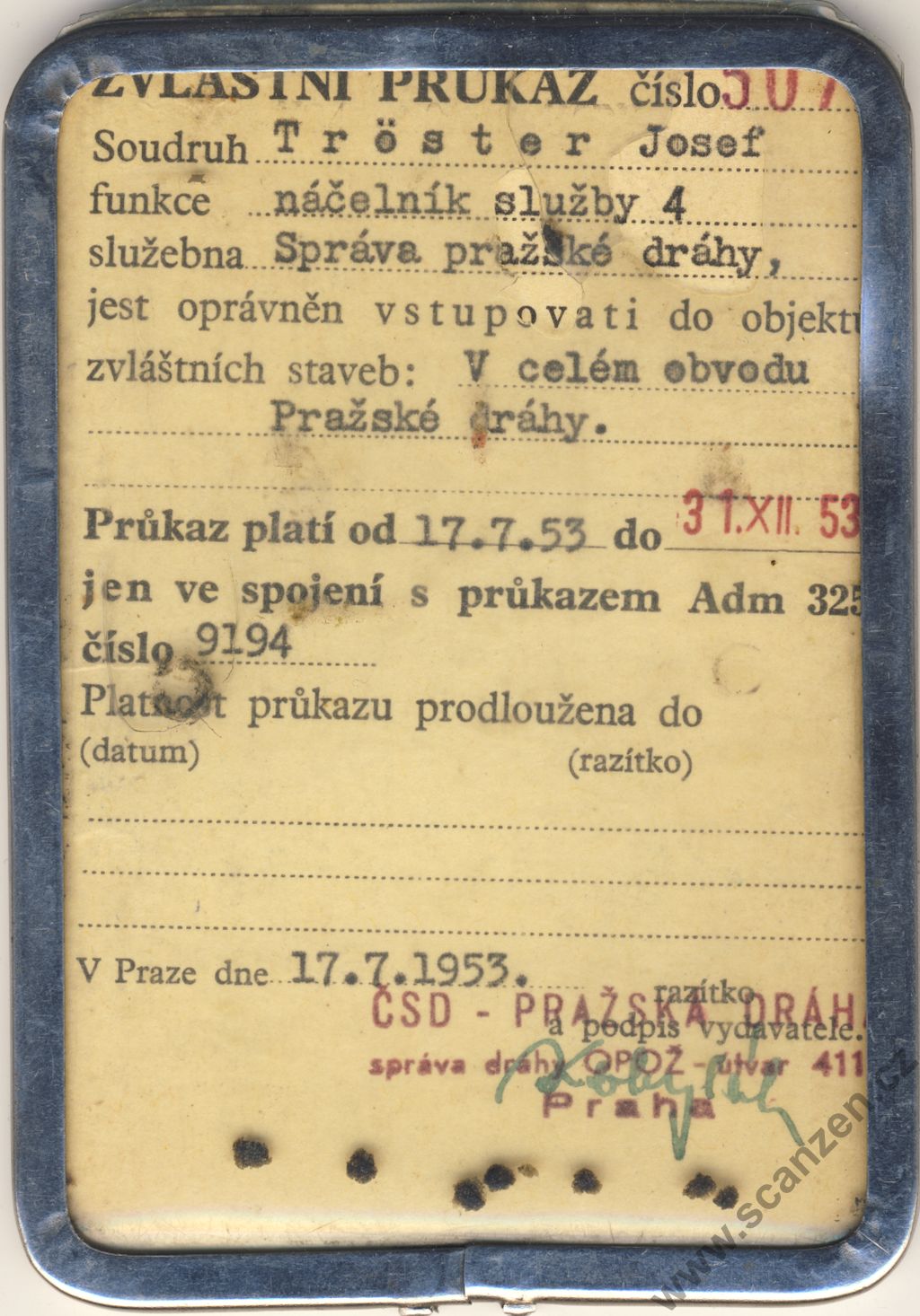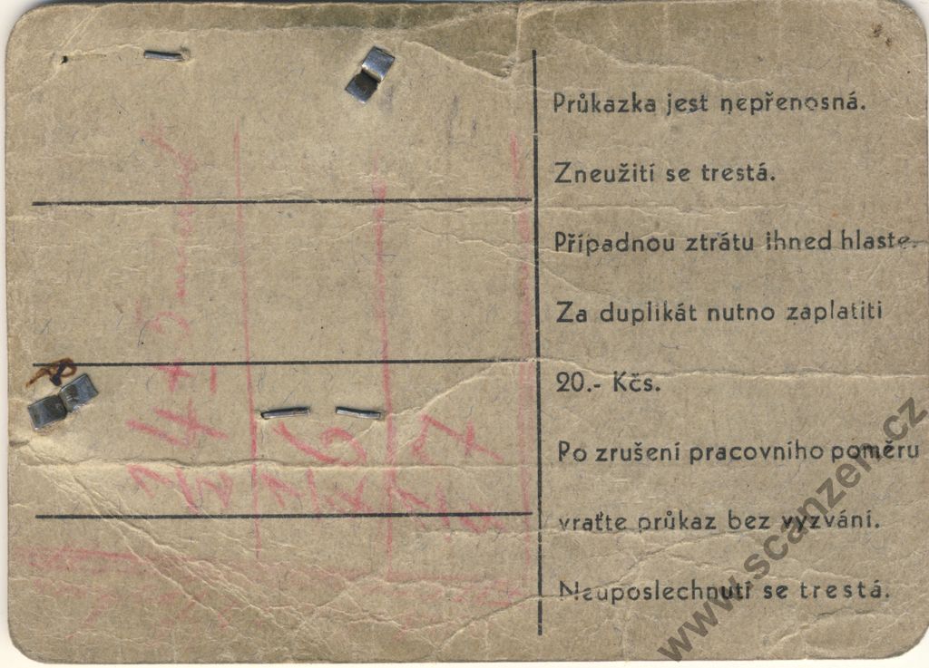 Osobní průkaz Protektorátní dráhy ČaM (1943) p2