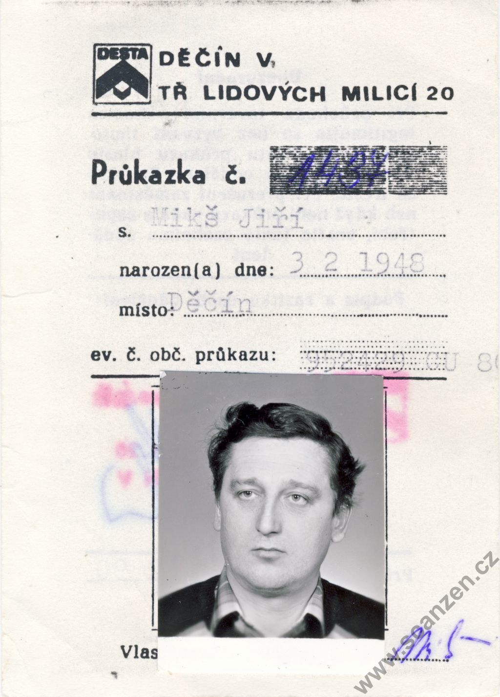 Průkazka ke vstupu Desta Děčín (1990) p1