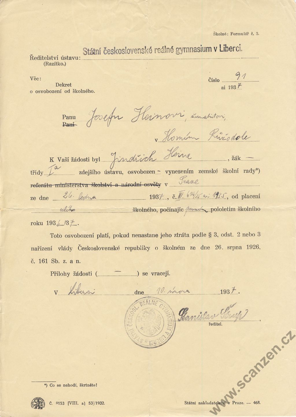 Dekret o osvobození od školného (1937)