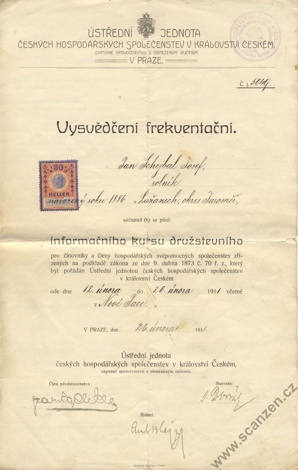 Frekventační vysvědčení (1911) p1
