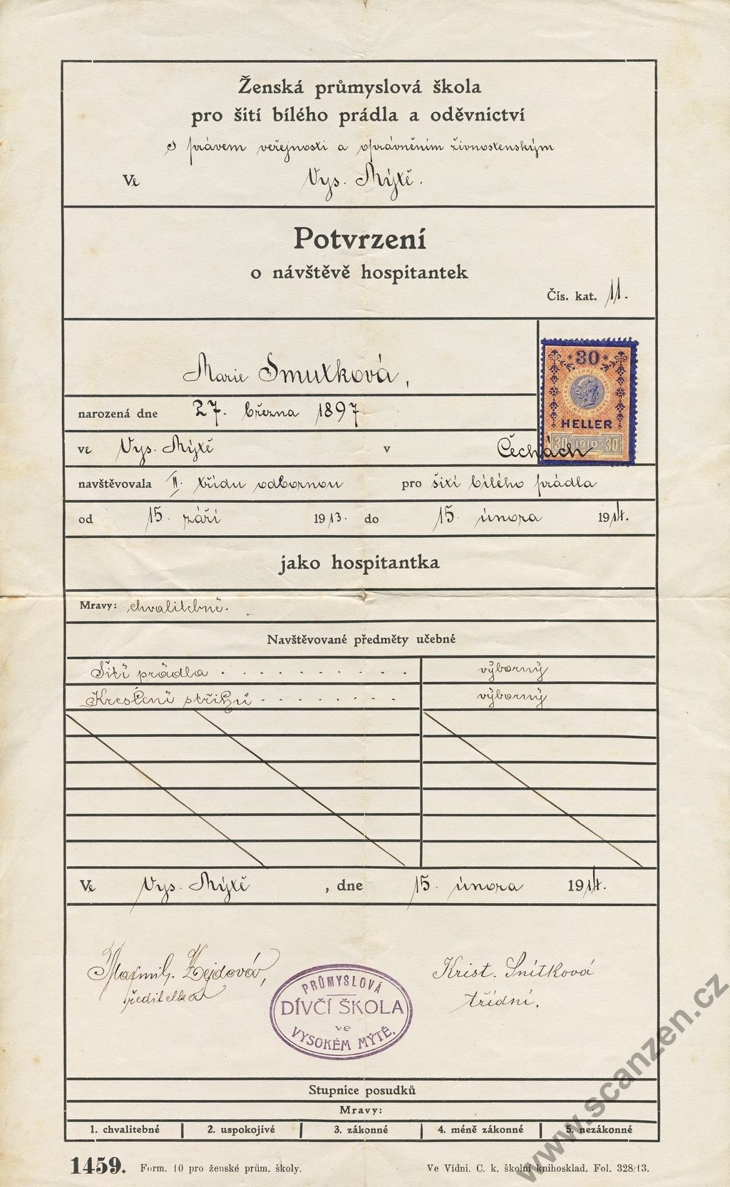 Potvrzení o návštěvě hospitanek (1914)2