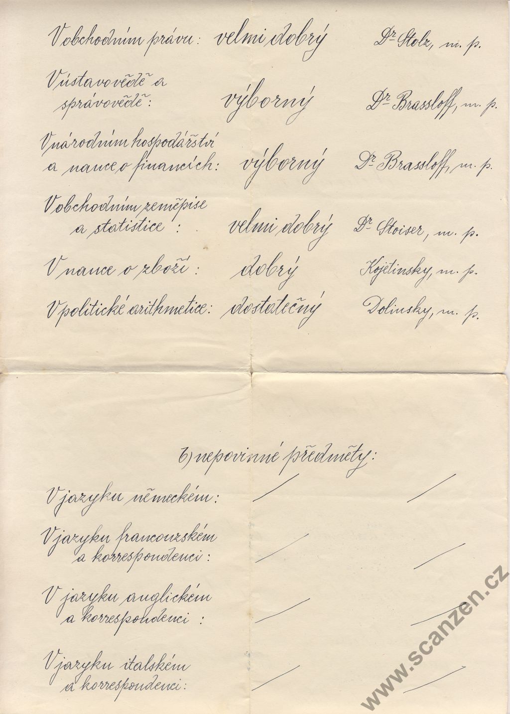 Vysvědčení obchodní akademie (1914) p2