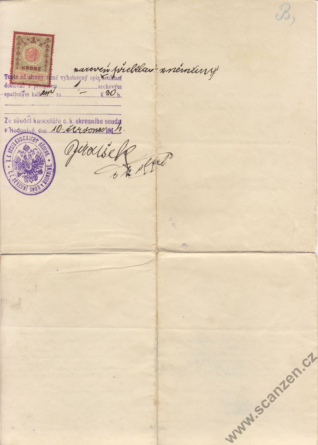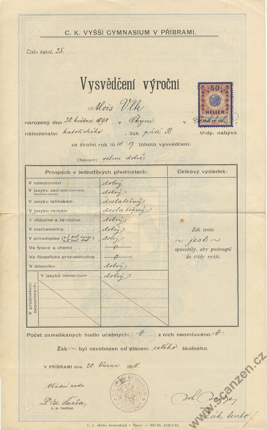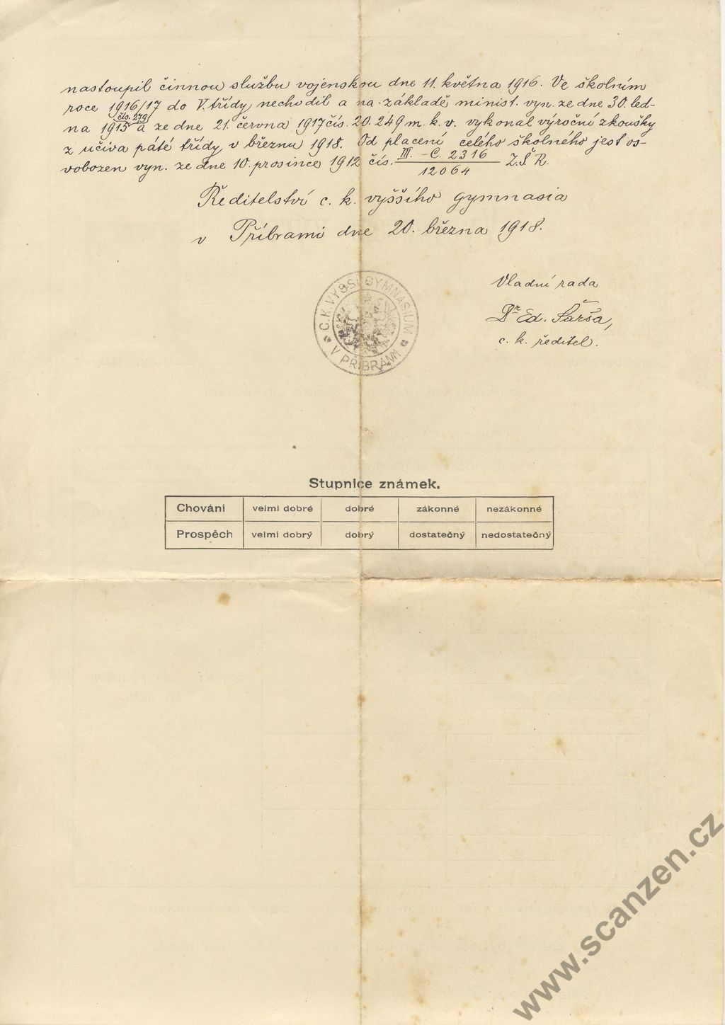 Vysvědčení výroční (1918) p1