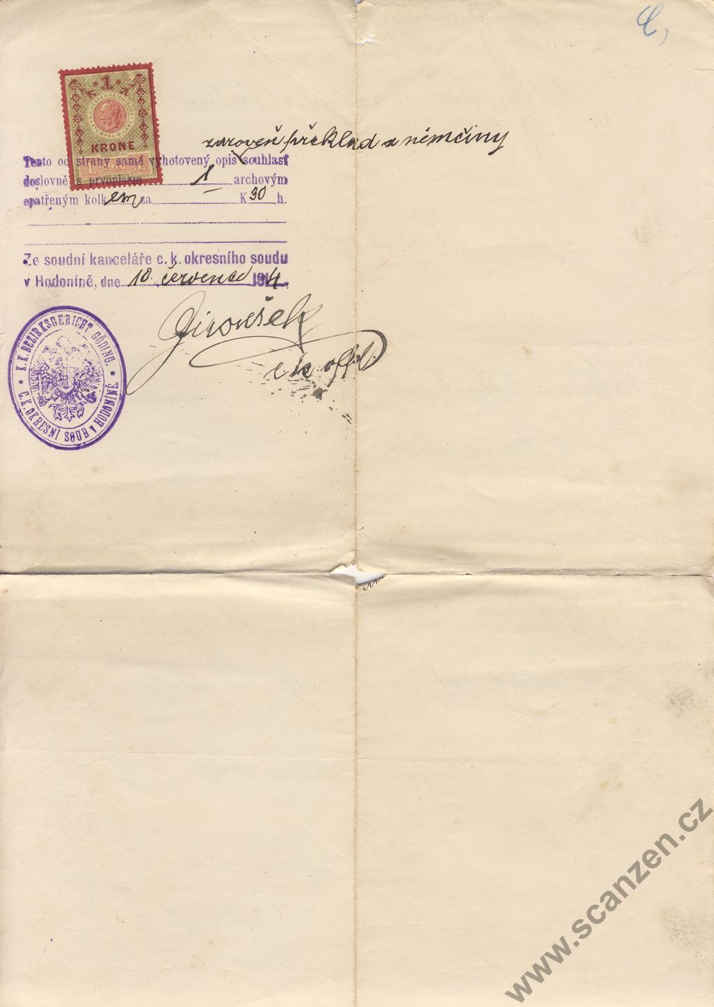 Vysvědčení jednoroční kurs (1914) p1
