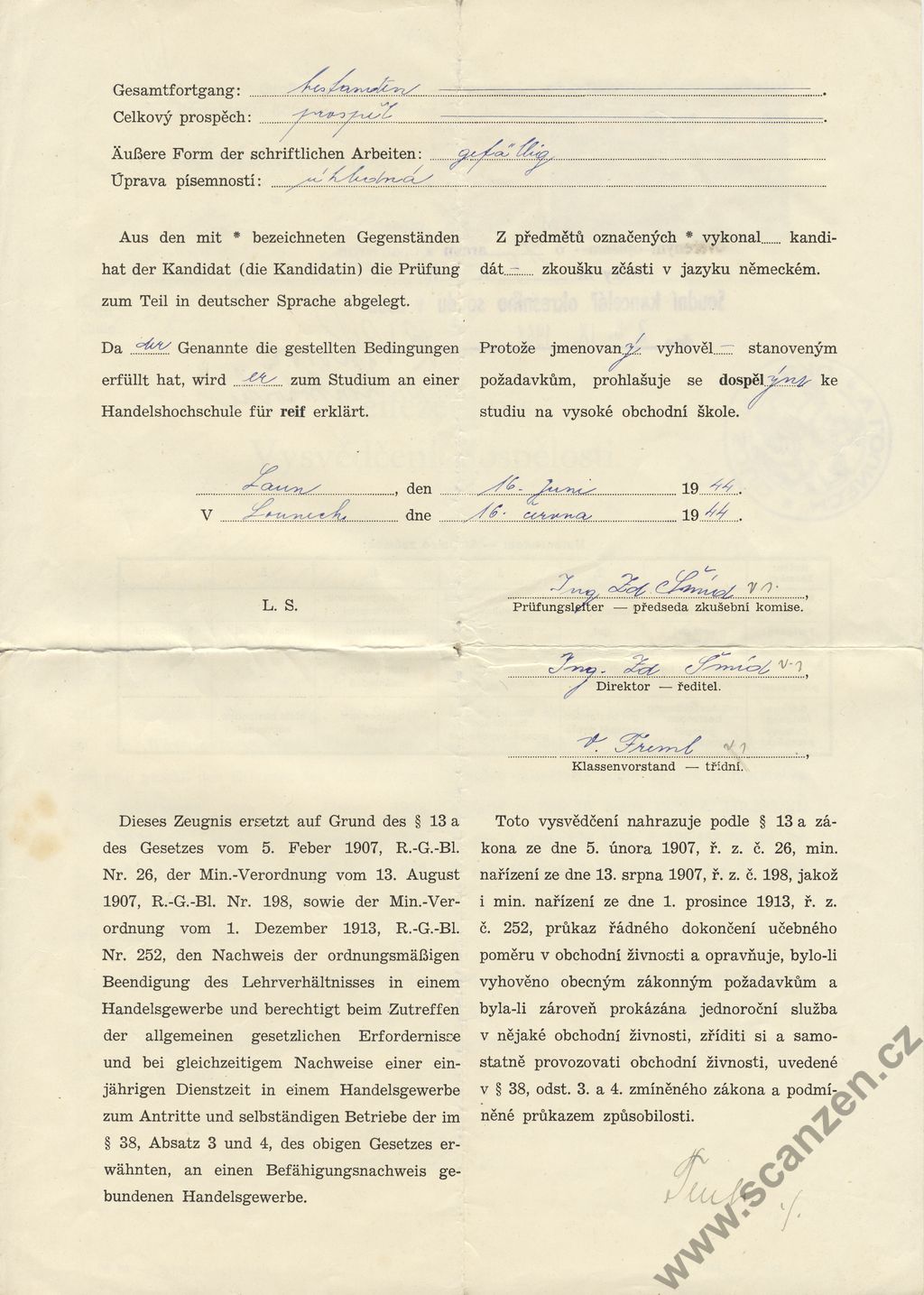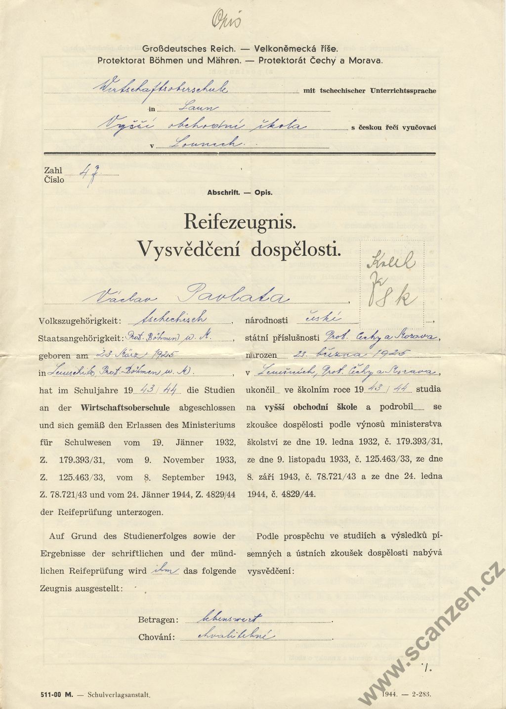 Vysvědčení dospělosti – Reifezengnis (1944) p1