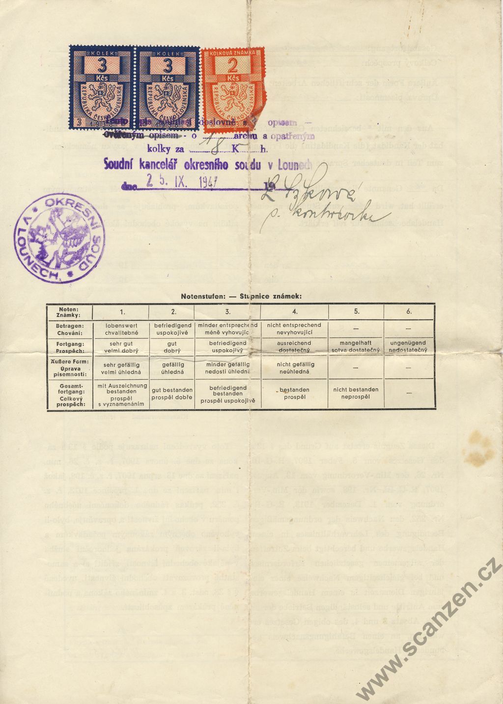 Vysvědčení o prospěchu a chování za I. a II.pololetí (1952) p2