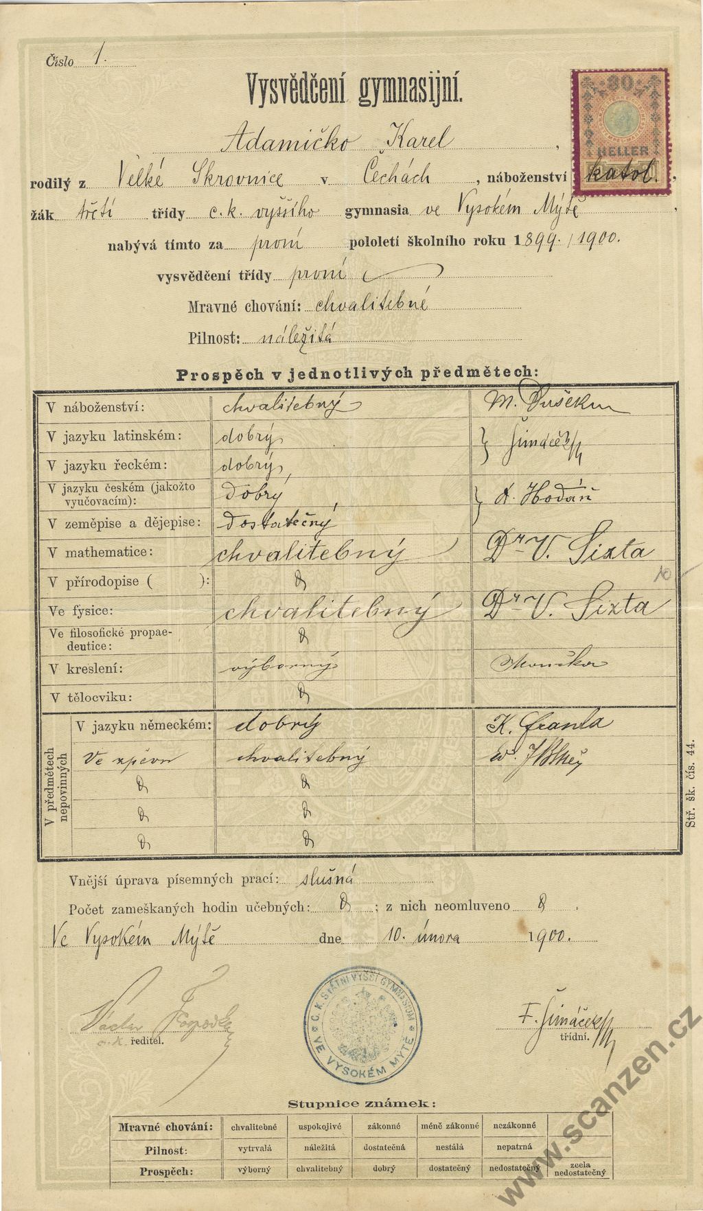 Vysvědčení gymnasijní (1900)
