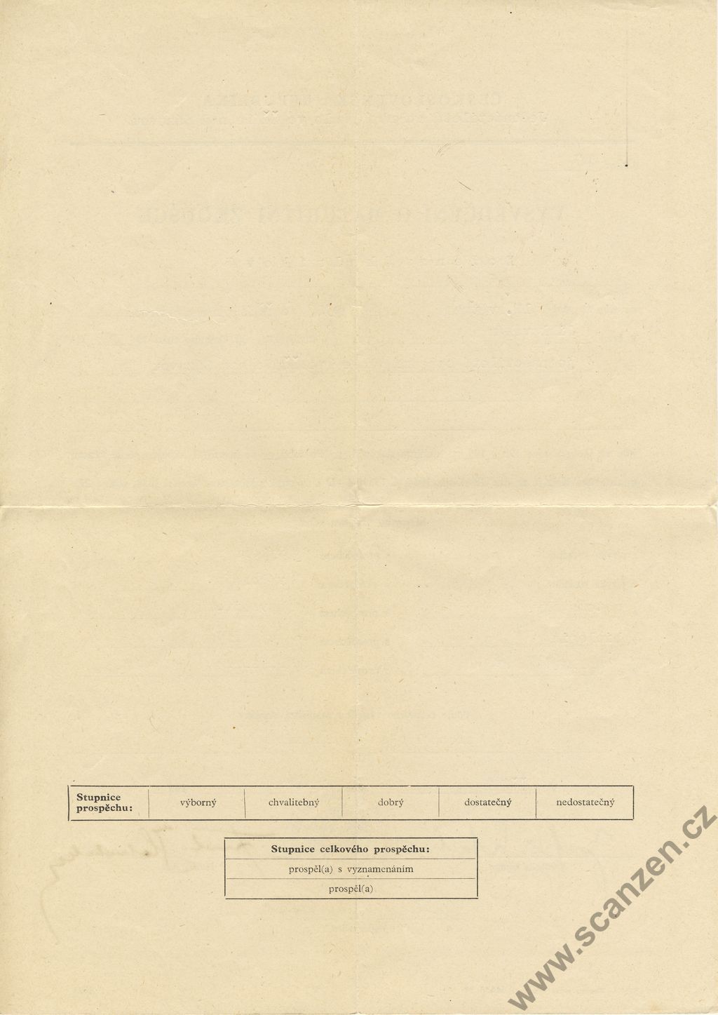 Vysvědčení o prospěchu a chování za I. a II.pololetí (1952) p1