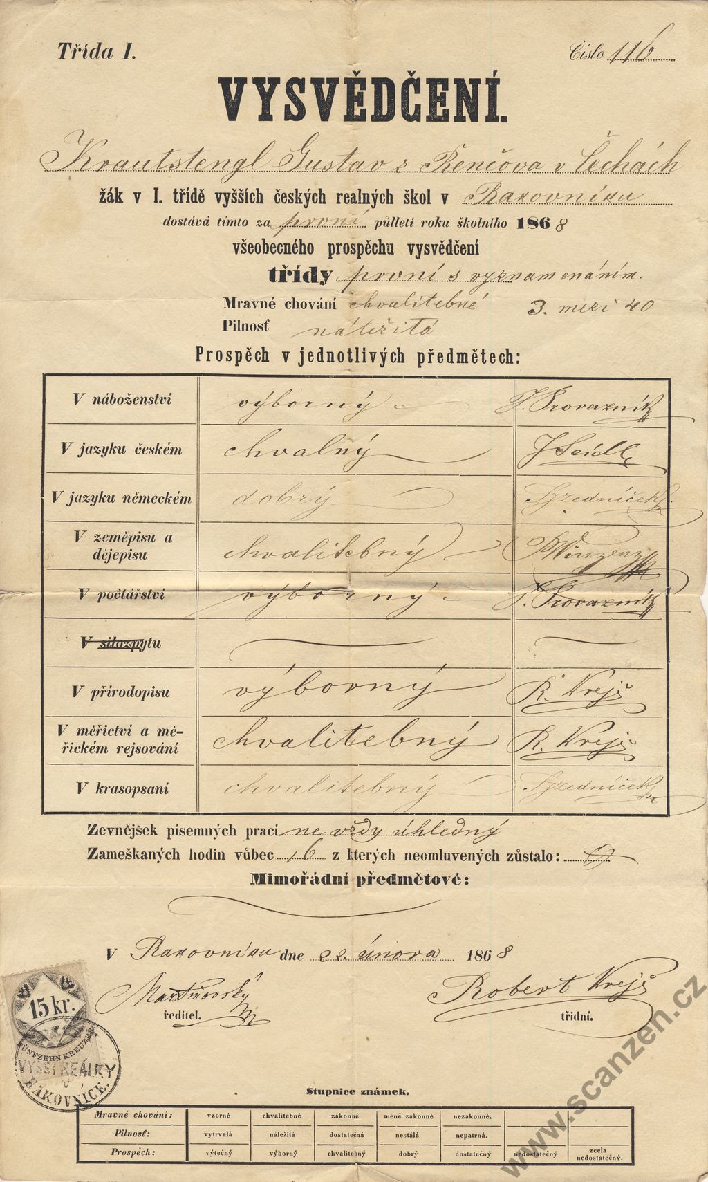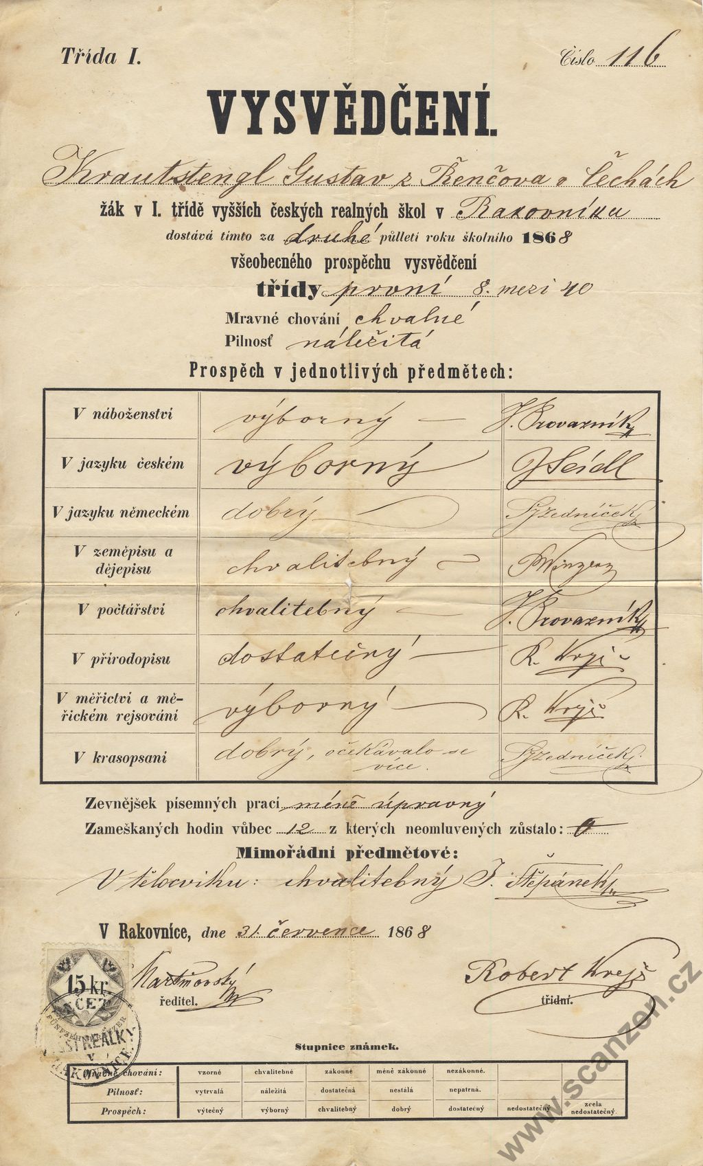 Vysvědčení vyšších českých realných škol 1. pol. (1868)