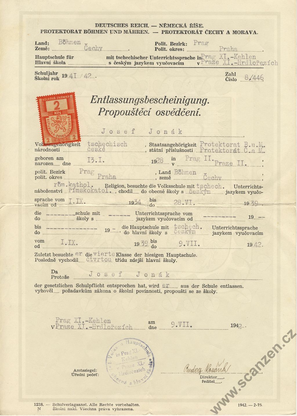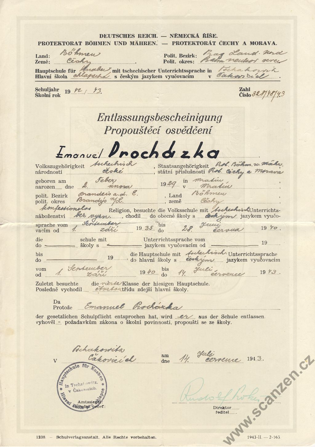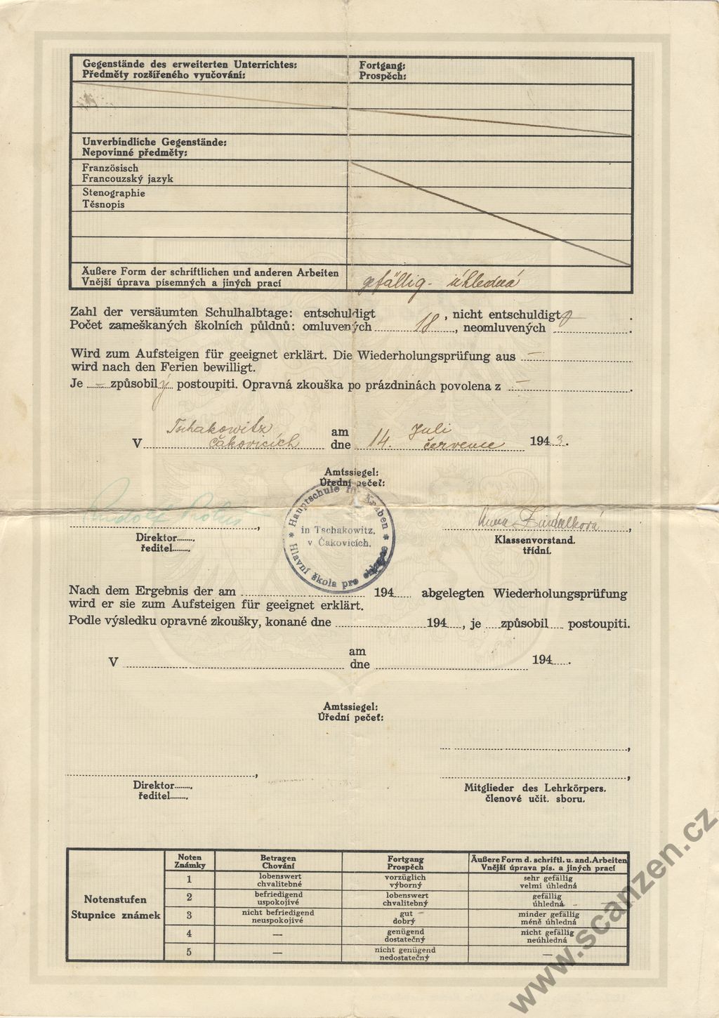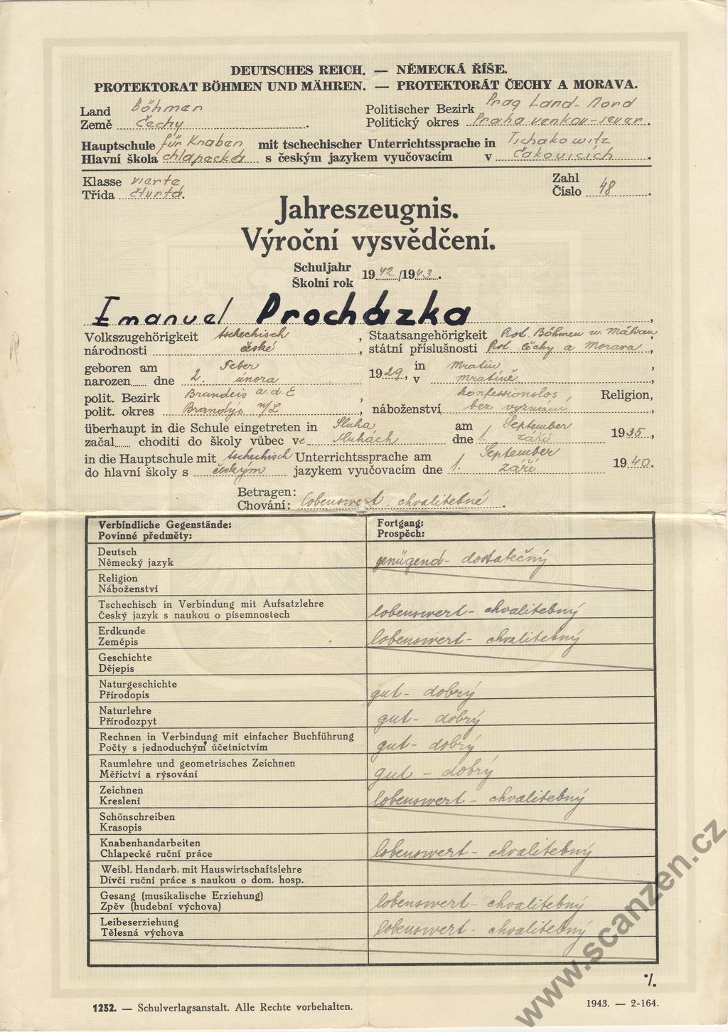 Jahreszeugnis – Výroční vysvědčení (1943) p1