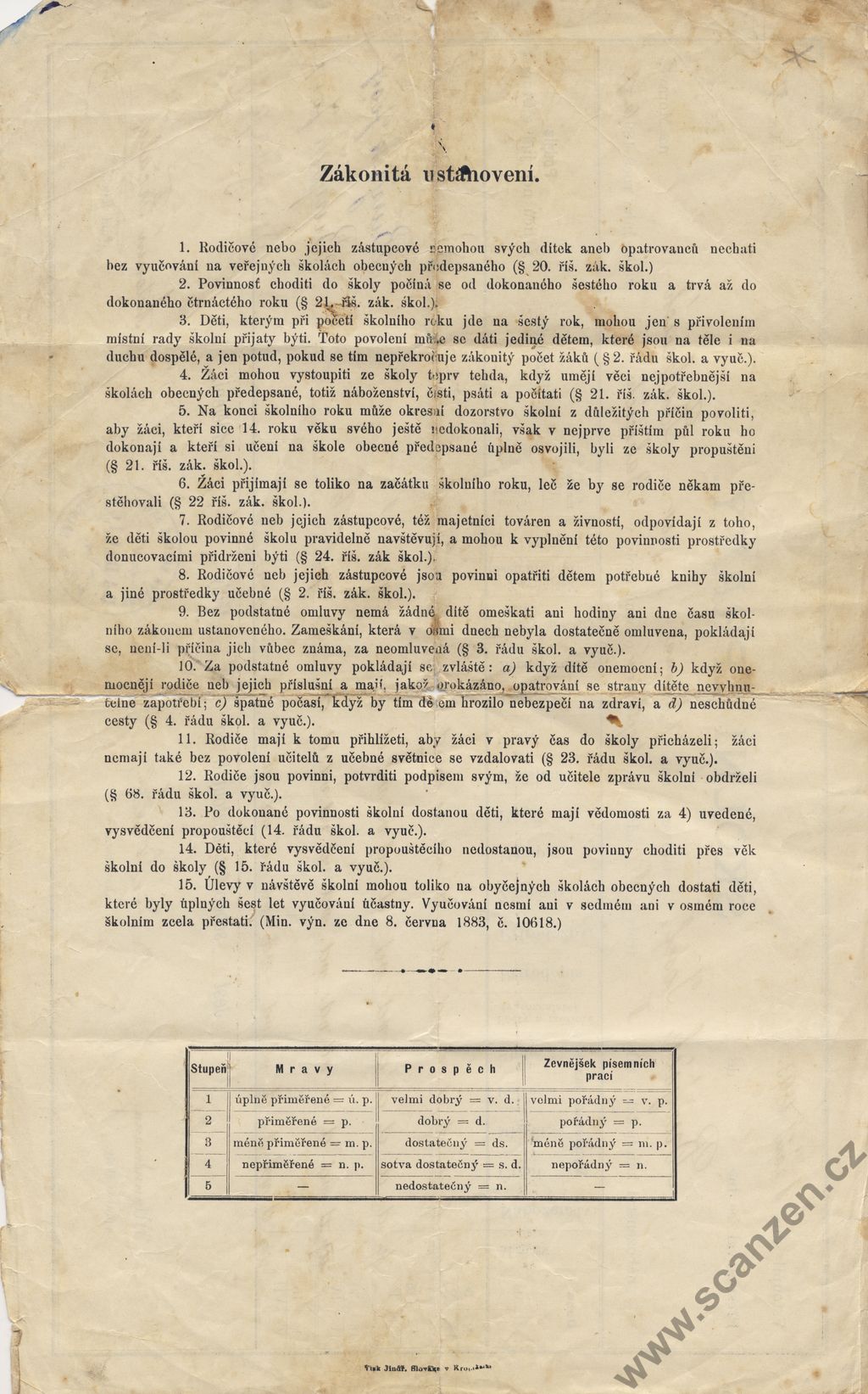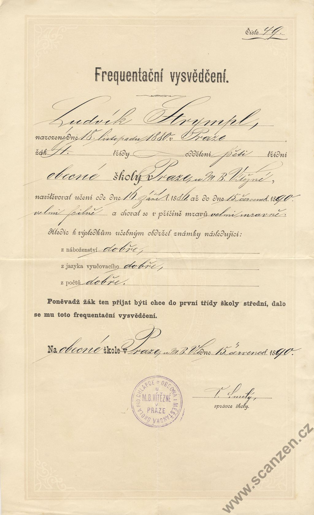 Freqventační vysvědčení (1890)