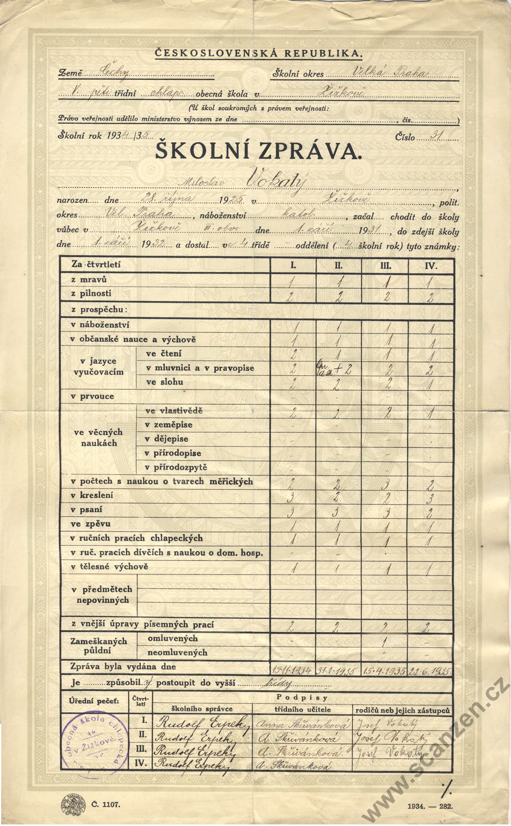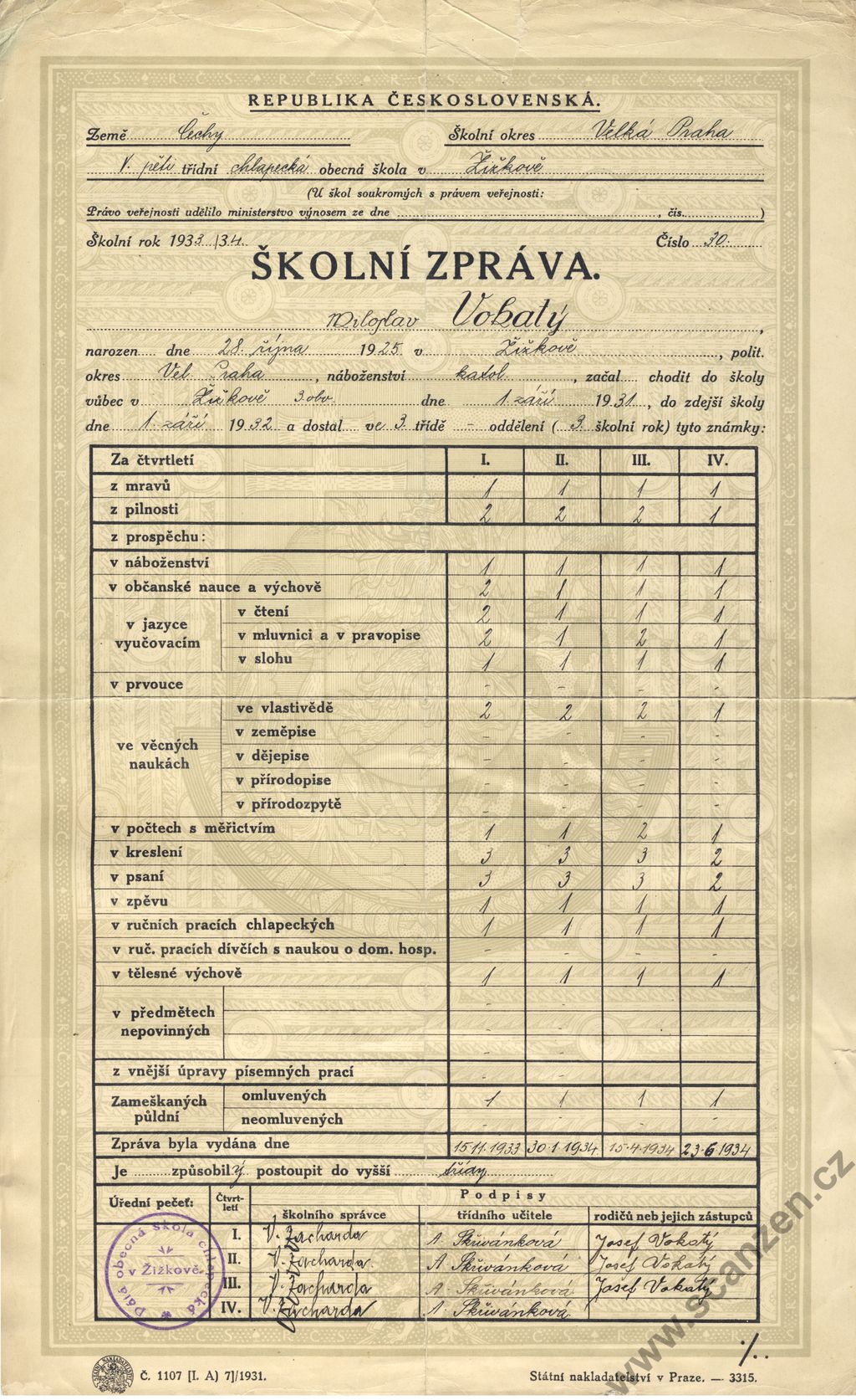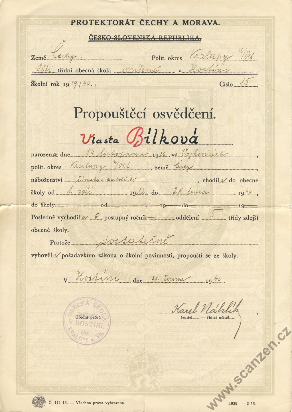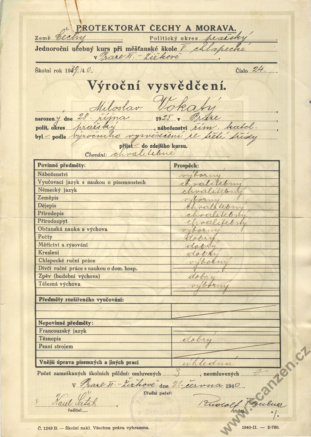 Výroční vysvědčení (1940) p1
