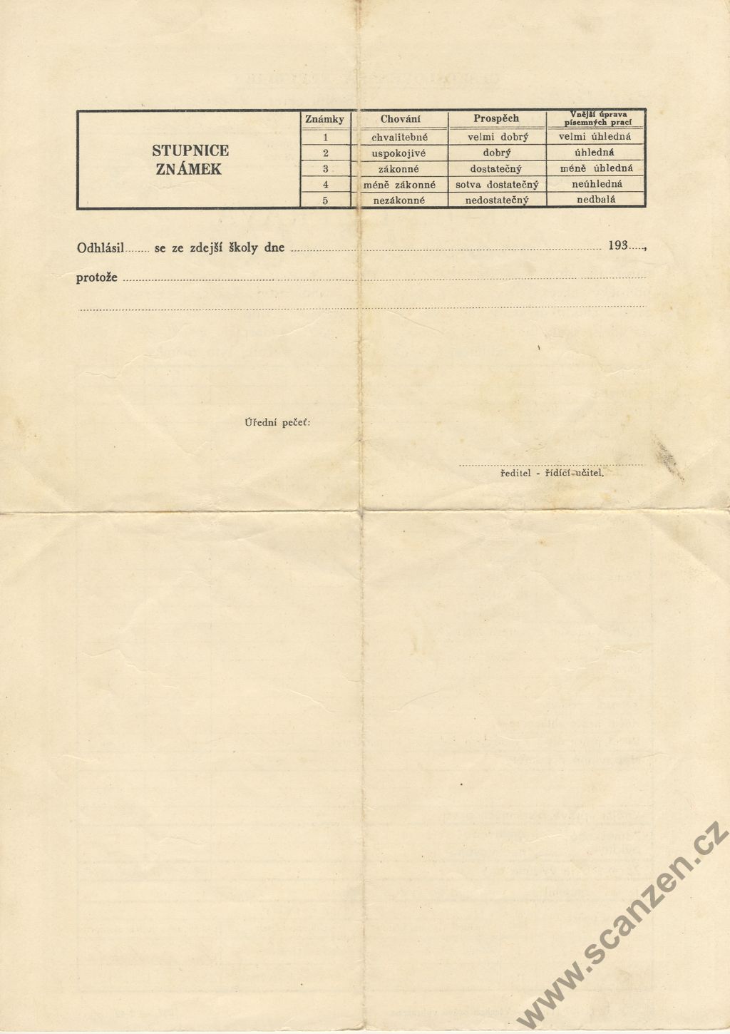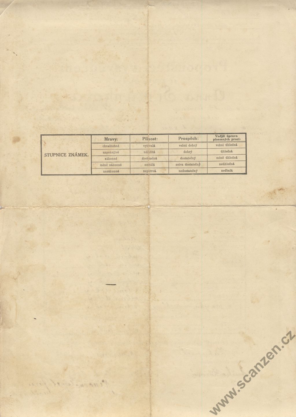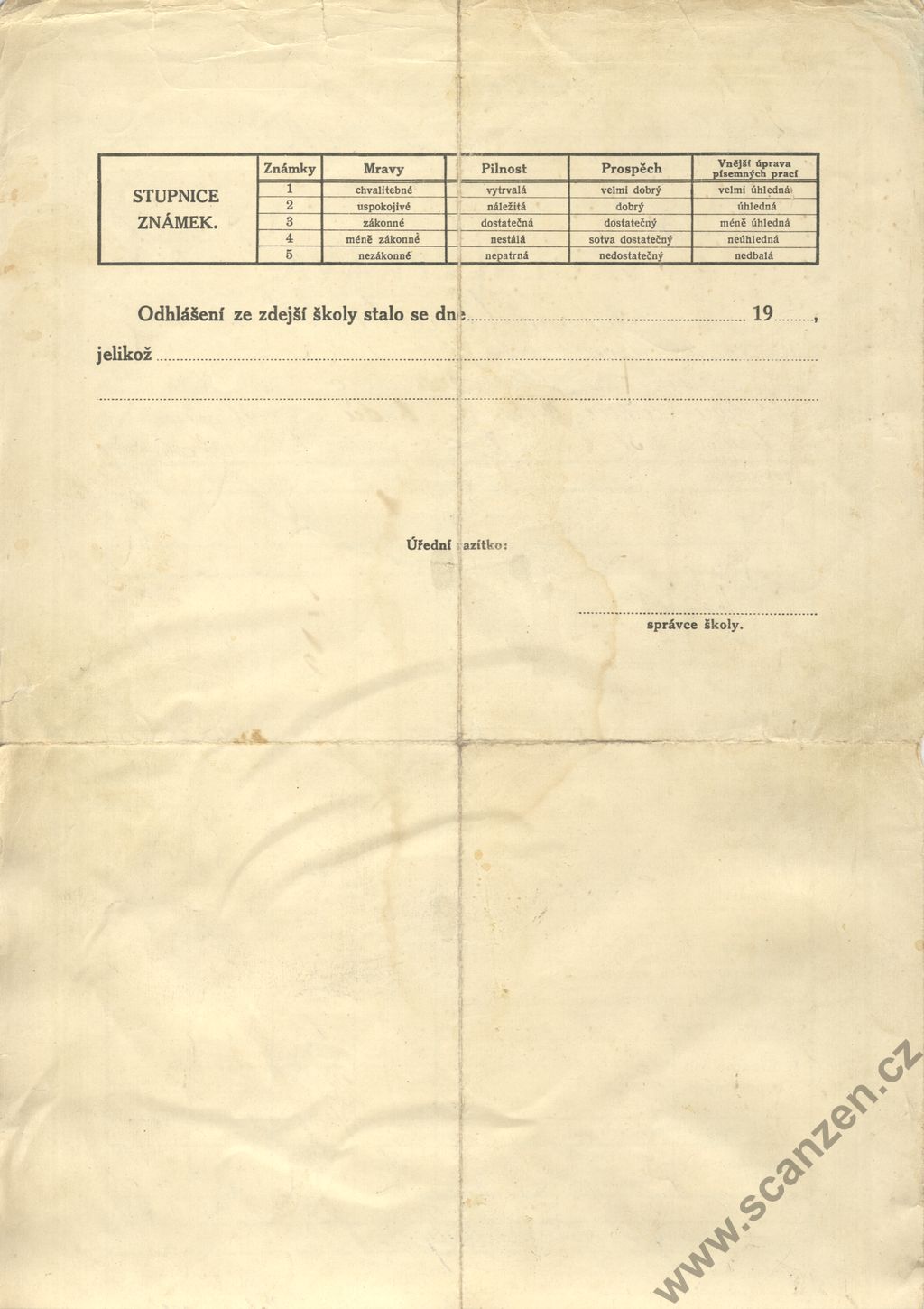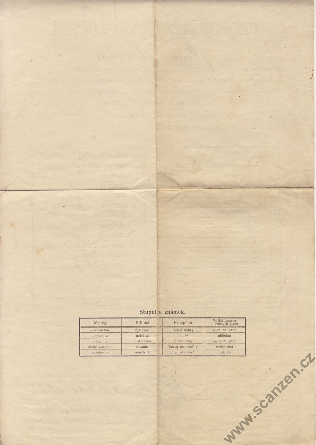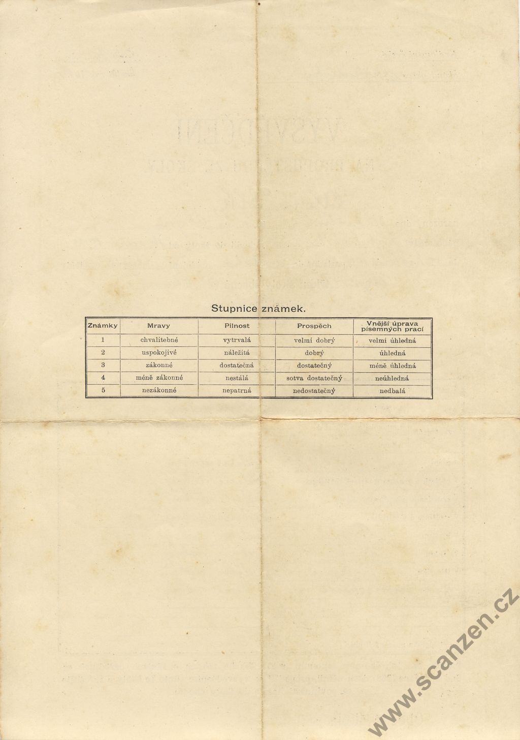 Propouštěcí vysvědčení ze školy obecné (1926)