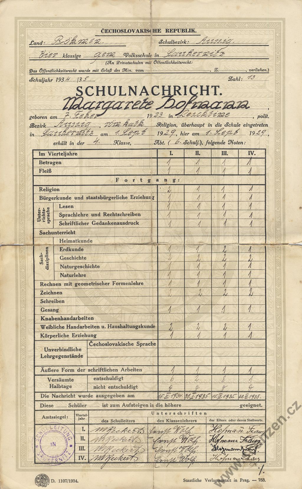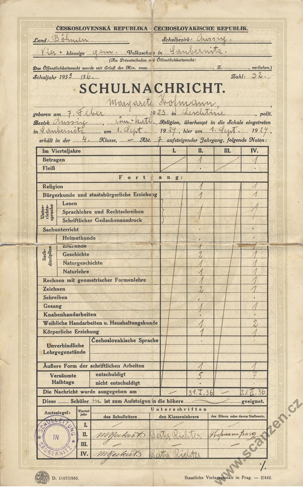 Schulnachricht (1935) p1