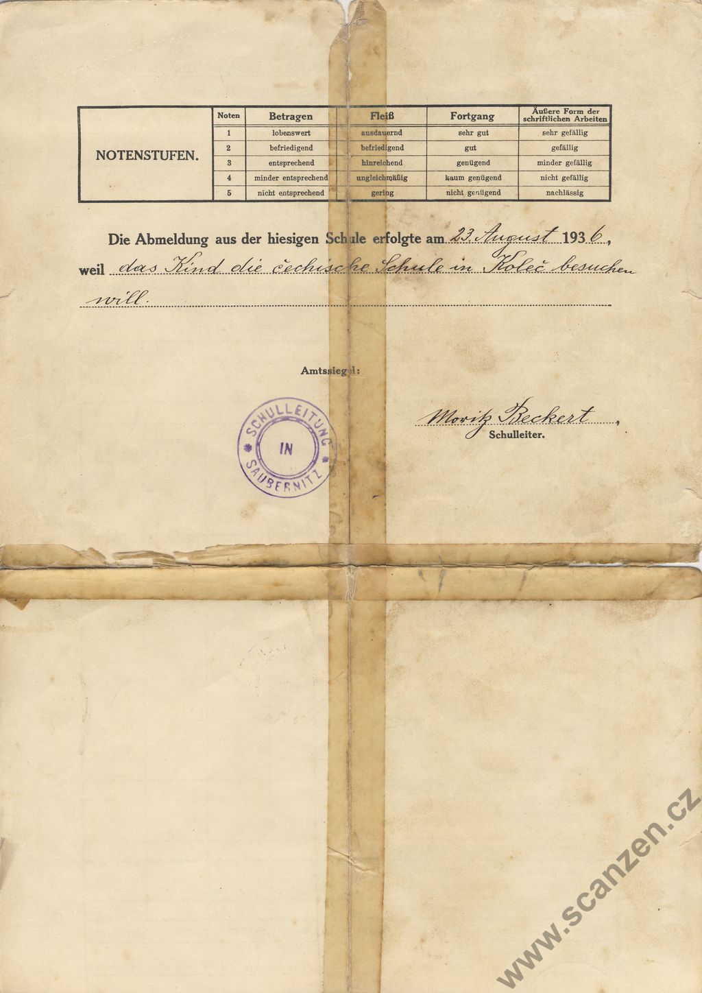 Schulnachricht (1936) p1