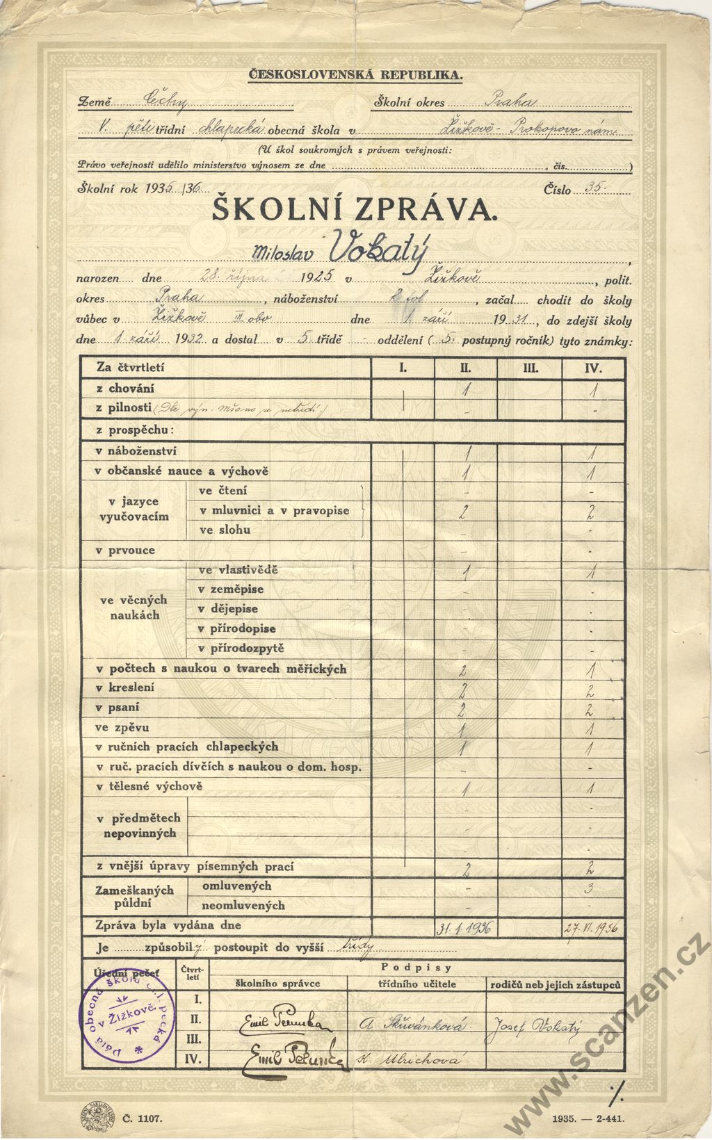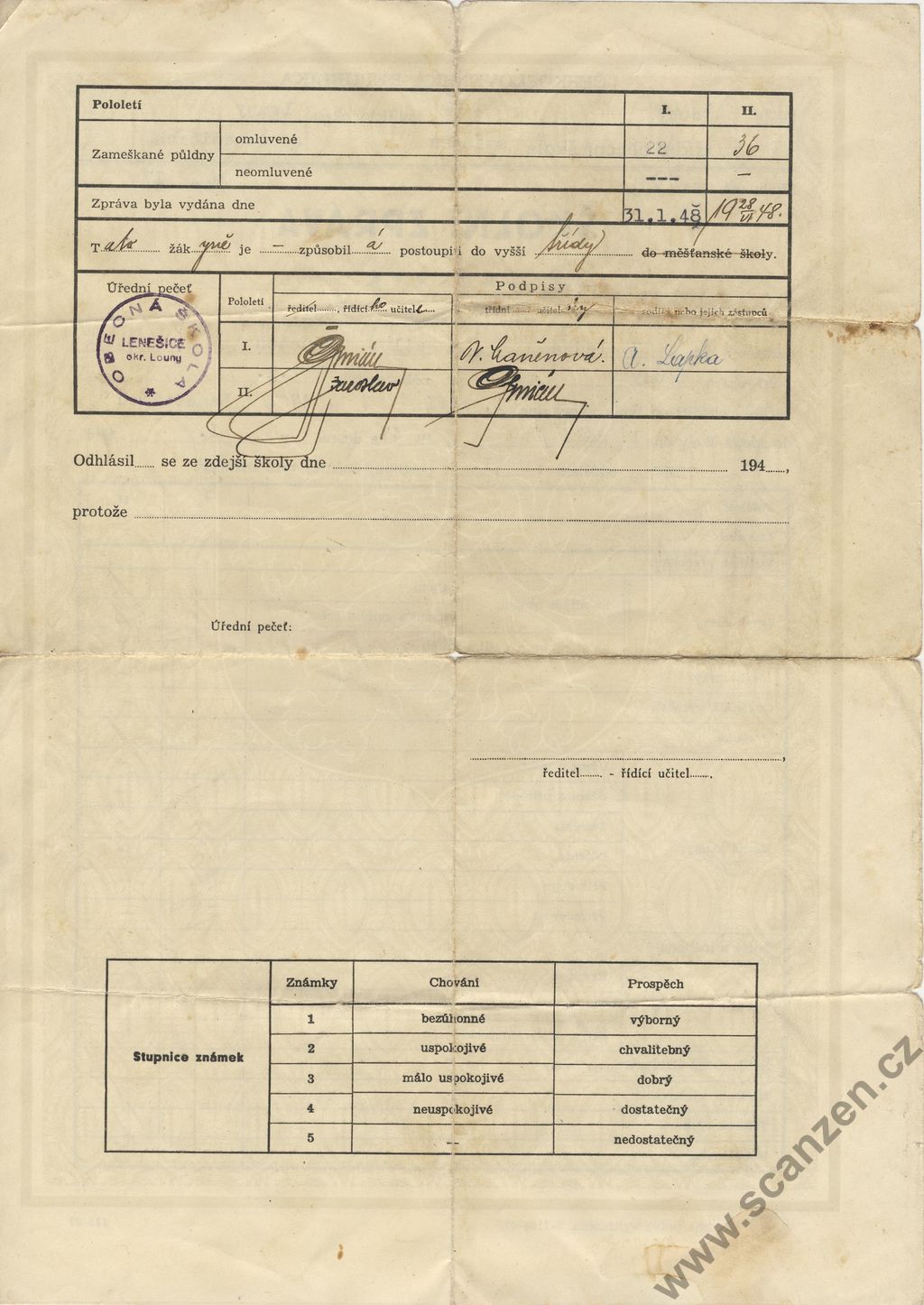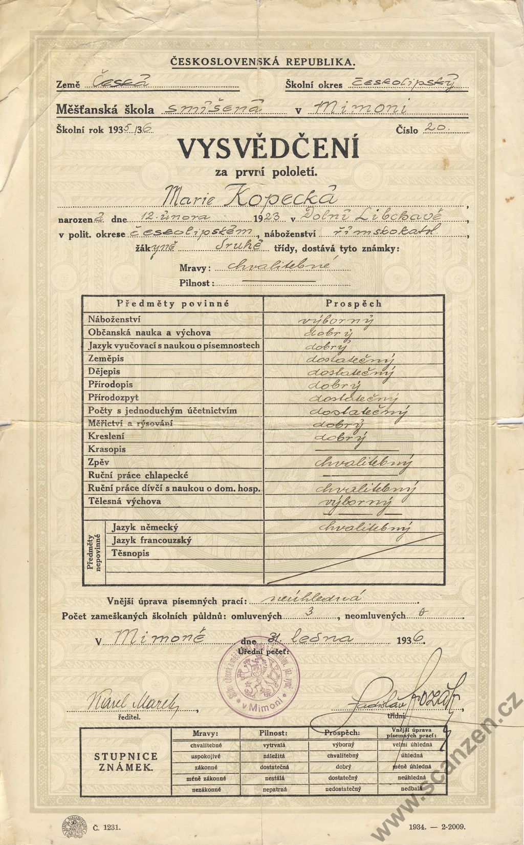 Vysvědčení za první pololetí (1936)