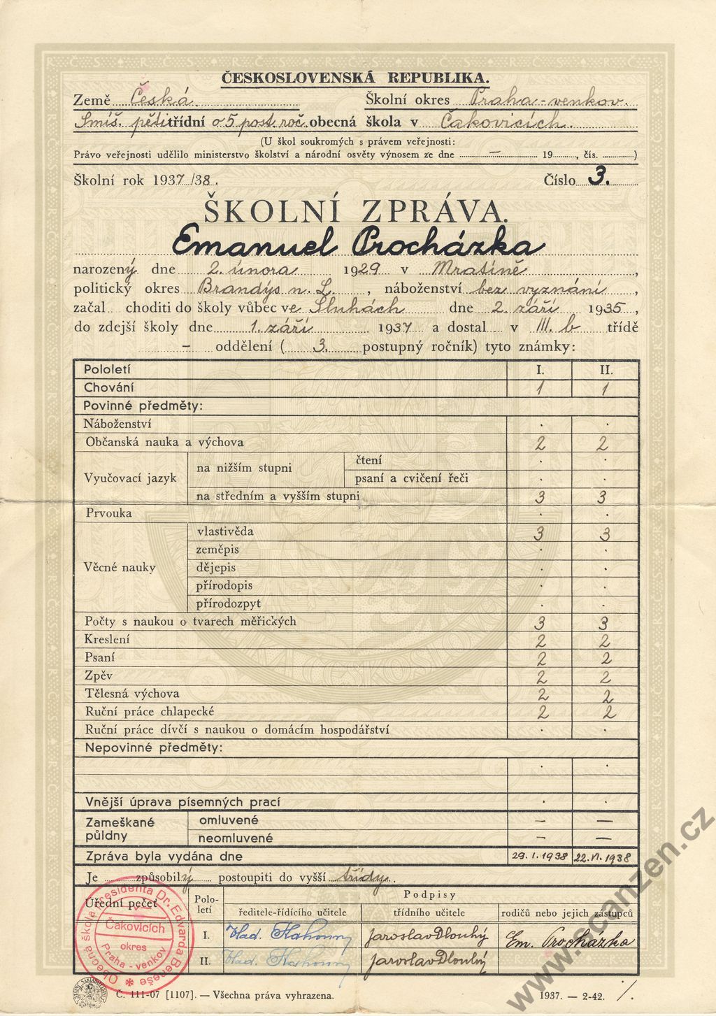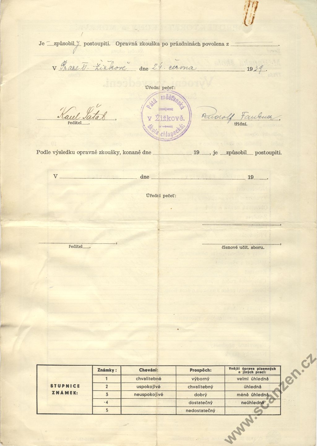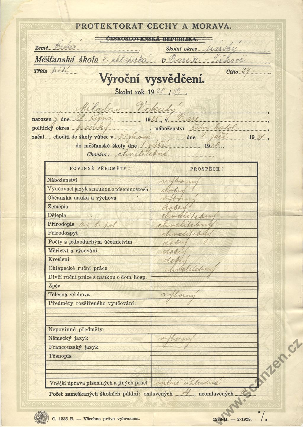 Výroční vysvědčení (1939) p1