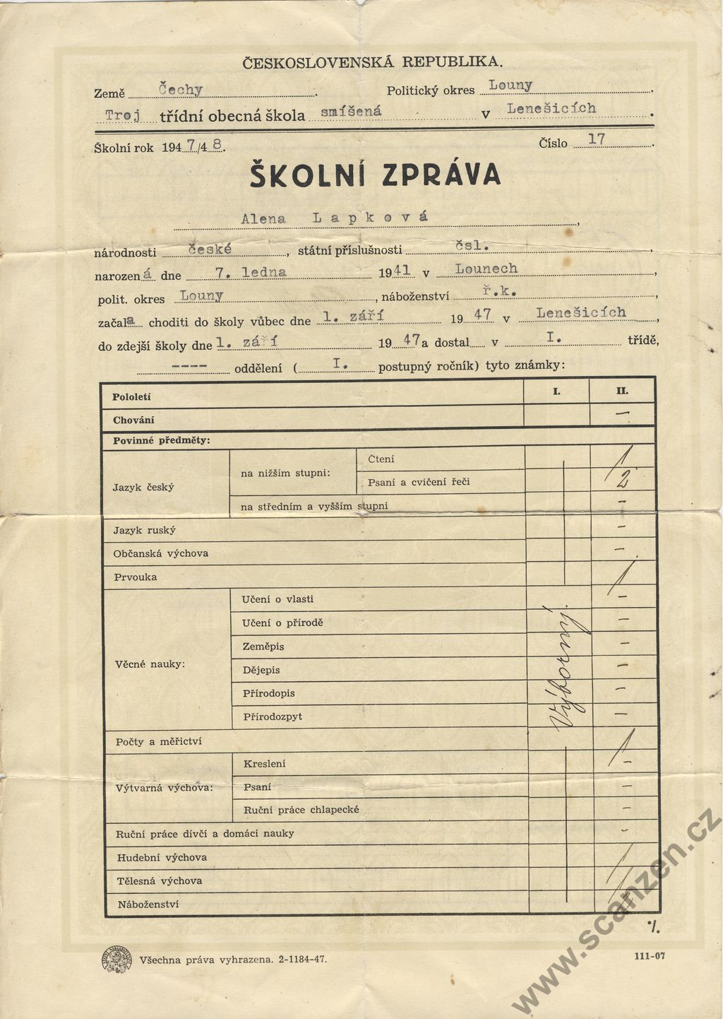 Vysvědčení (1954) p1