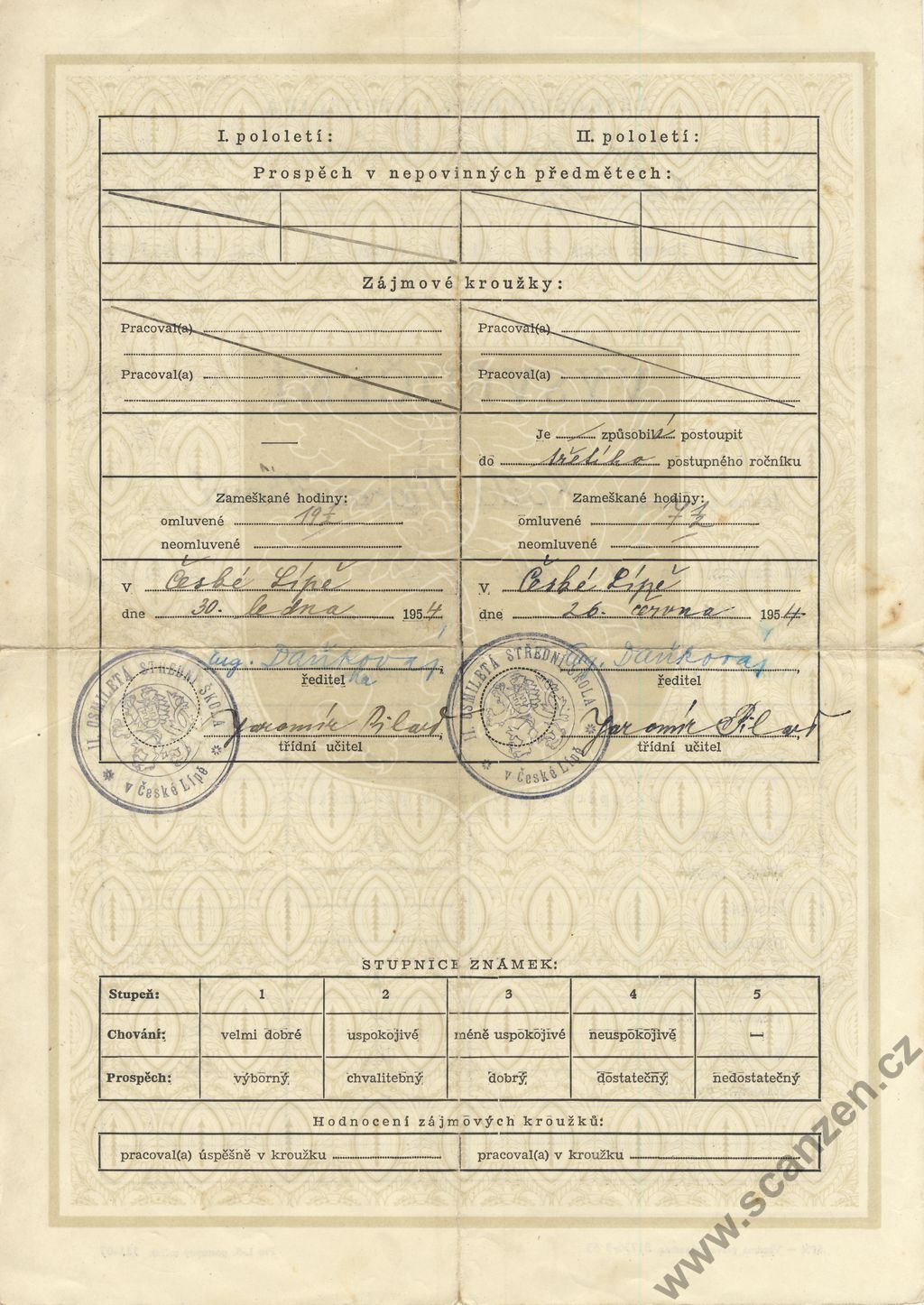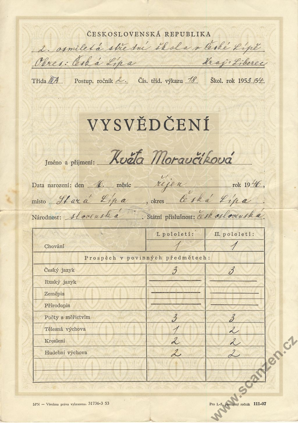 Vysvědčení (1954) p2