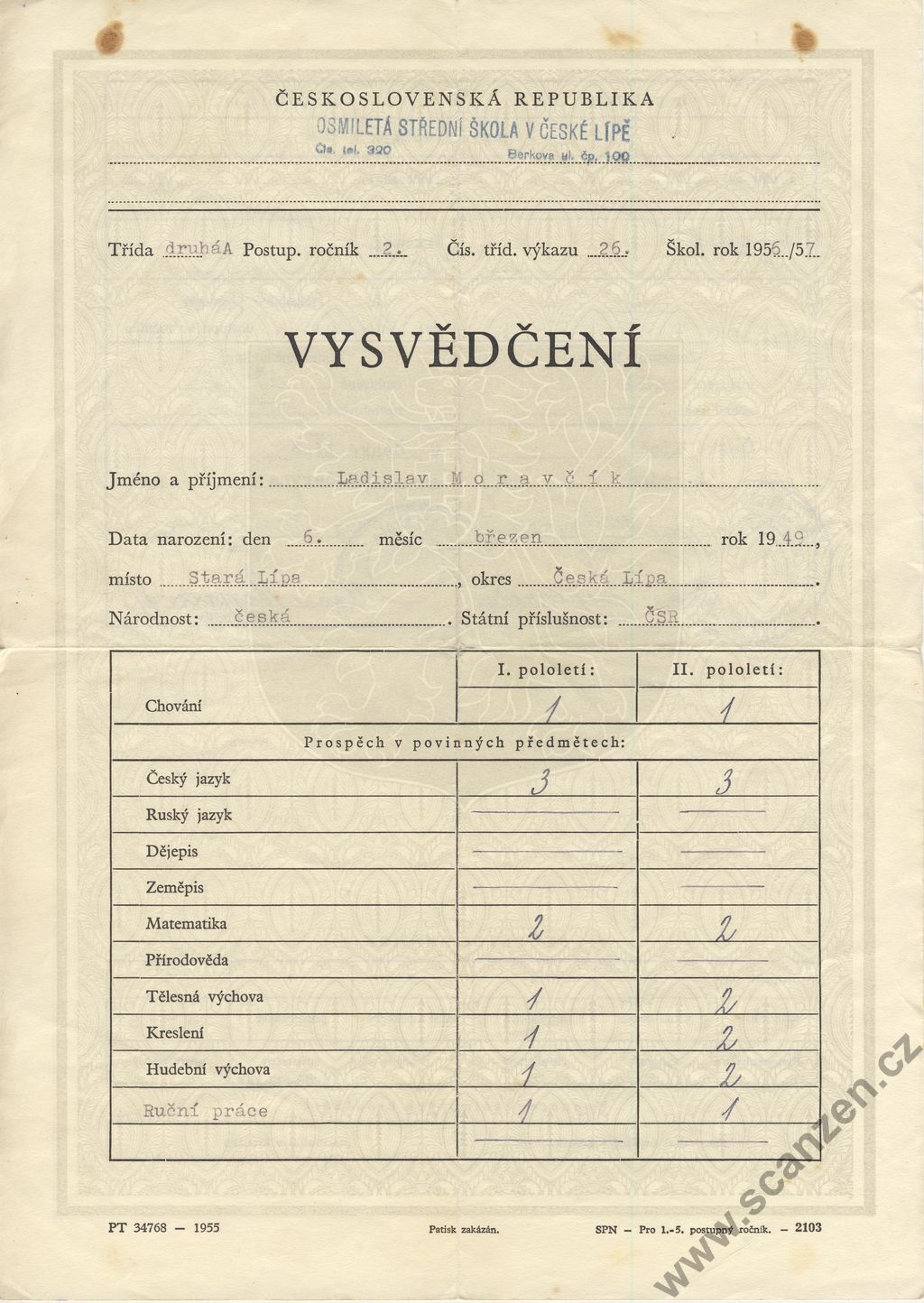 Vysvědčení (1957) p2